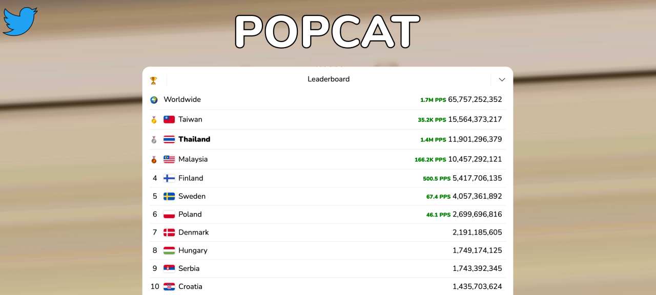 อัปเดต 10 อันดับแรก จิ้มแมวรัวๆ เกม POPCAT ชาวเน็ตไทยร่วมใจต่อสู้ จนพุ่งติดอันดับ 2 ของโลกแล้ว