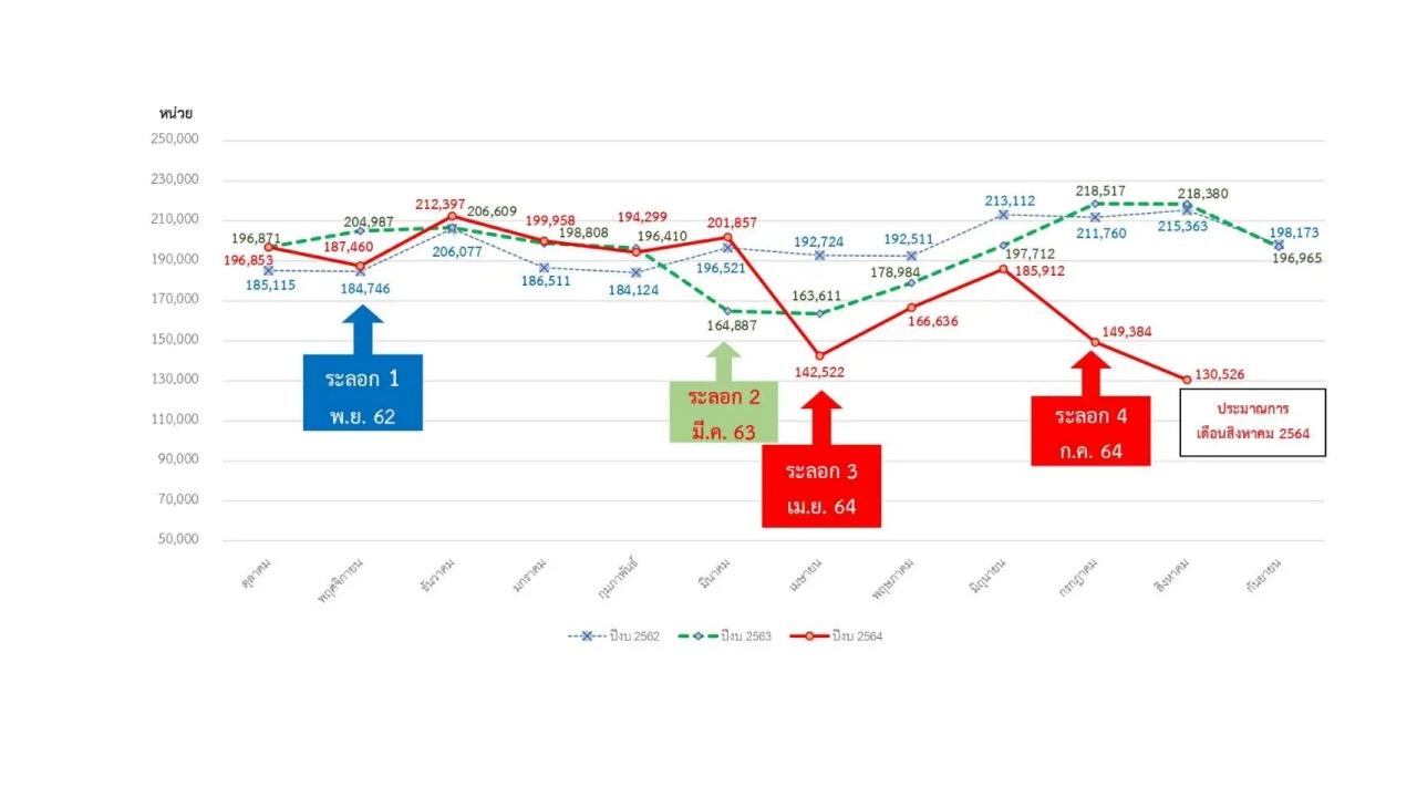 วันที่ 26 ส.ค. 64 รศ.พญ.ดุจใจ ชัยวานิชศิริ ผู้อำนวยการศูนย์บริการโลหิตแห่งชาติ สภากาชาดไทย กล่าวว่า นับตั้งแต่การระบาดของโรคโควิด การบริจาคโลหิตทั่วประเทศลดลงอย่างมาก วิกฤติในครั้งนี้รุนแรงกว่าในรอบปีที่ผ่านมา จากกราฟเป็นข้อมูลการบริจาคโลหิตทั่วประเทศ การบริจาคลดลง ซึ่งในภาวะปกติ จะเห็นว่าต้องมีโลหิตรักษาผู้ป่วยเดือนละ 200,000 ยูนิต โดยเฉพาะเดือนกรกฎาคมที่ผ่านมาได้รับโลหิตจากการบริจาคเพียง 149,384 ยูนิต มีการขาดแคลนสะสมยาวนานมากกว่า 5 เดือน จึงมีผู้ป่วยที่ต้องเลื่อนการผ่าตัดและการรักษาพยาบาลออกไปอีกเป็นจำนวนมาก