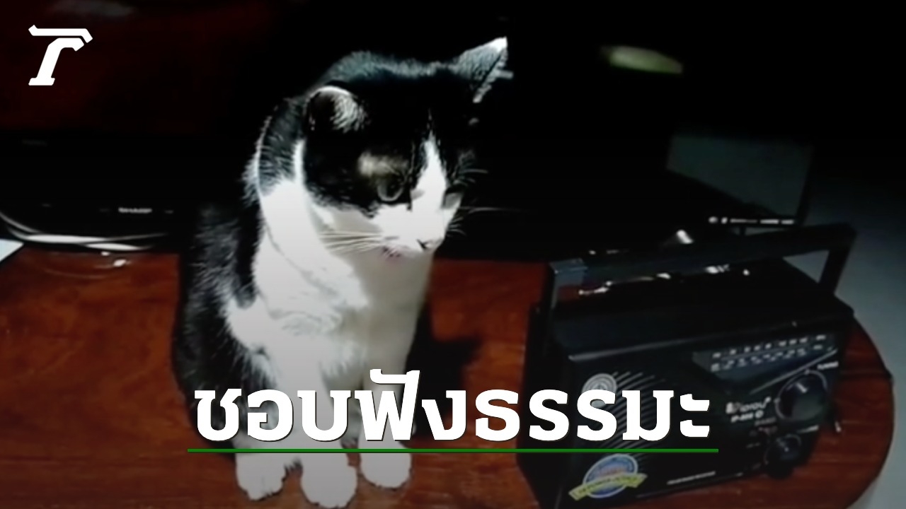 โซเชียลเอ็นดู "เจ้าขำขำ" แมวพันธุ์ไทยเพศเมียสีขาวลายจุดดำ ชอบกระโดดนั่งข้างวิทยุฟังธรรมะเป็นประจำ ตั้งใจฟังพระเทศน์ทุกวัน
