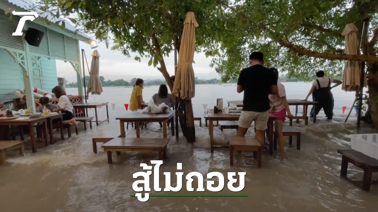 ร้านอาหารริมเจ้าพระยา เผยคลิปบรรยากาศลูกค้านั่งกินอาหารสุดชิล คลื่นมาพร้อมใจกันลุก น้ำสงบนั่งกินต่อ