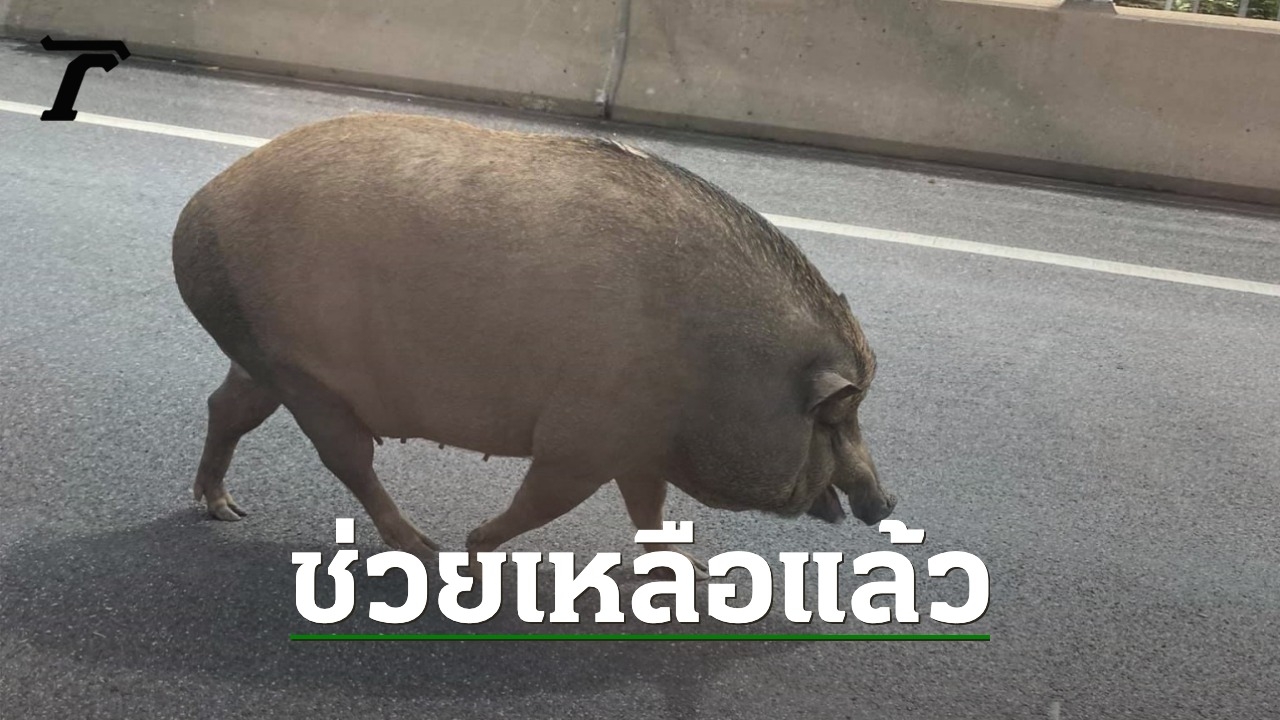 "หมูป่า" โผล่ทางด่วนศรีรัช เจ้าหน้าที่โร่ช่วย หลังผู้ใช้ถนนหวั่นถูกรถชน คาดเป็น 1 ในหมูป่าที่เคยรับแจ้ง แต่หนีการจับกุมหลุดรอดมาได้ ล่าสุดให้การช่วยเหลือเรียบร้อยแล้ว