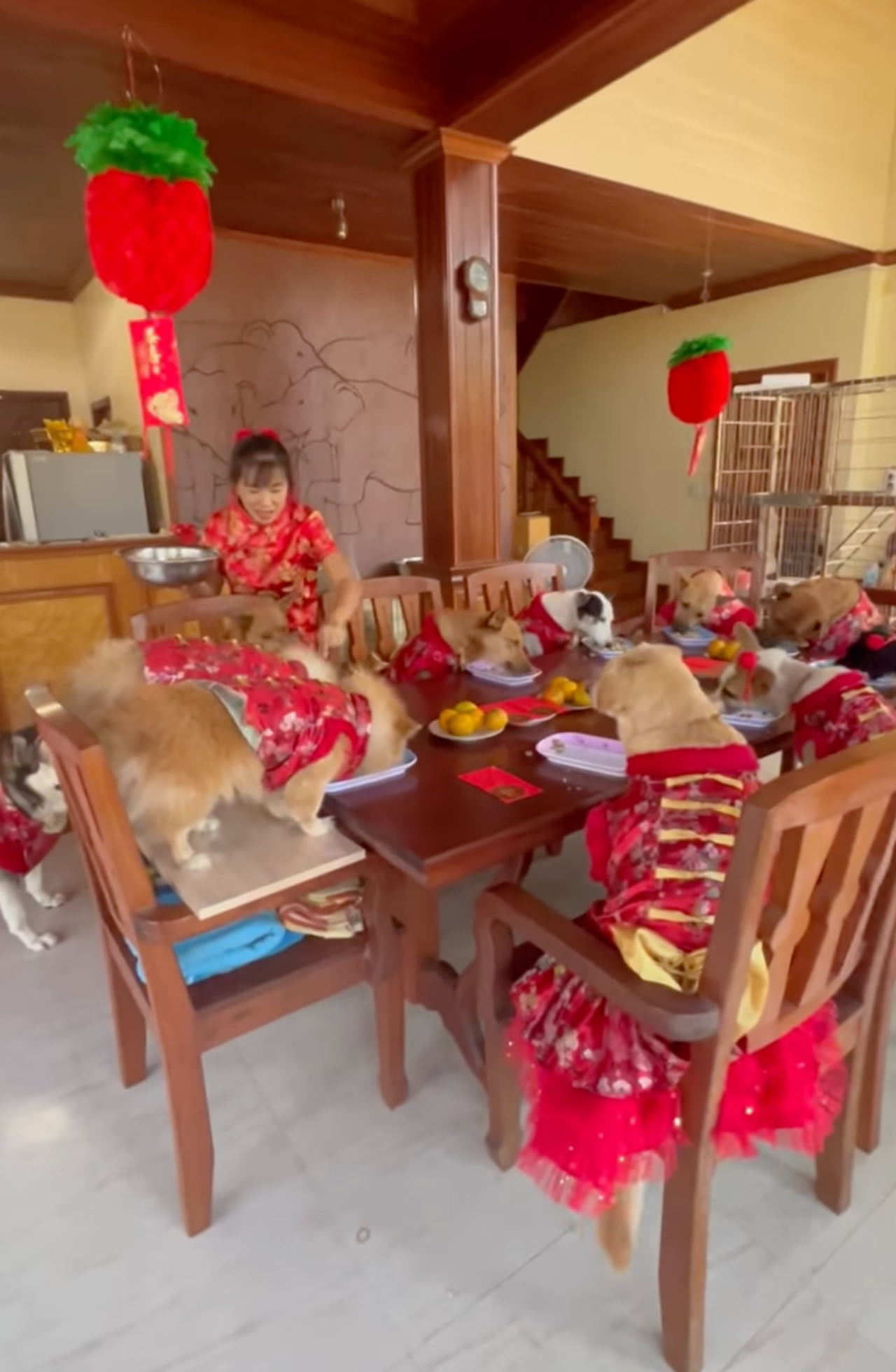ทำเอาบรรดาชาวเน็ตต่างอมยิ้มไปตามๆ กัน หลังเฟซบุ๊กเพจ "มะหมาผู้น่ารัก" โพสต์คลิปวิดีโอแปลงโฉมเหล่า "น้องหมา" ใส่ชุดจีนสีแดง กลายเป็นเหล่าอาตี๋ อาหมวย สุดน่ารัก นั่งโต๊ะรอรับประทานอาหารอย่างเรียบร้อย ฉลองเทศกาลตรุษจีน พร้อมระบุข้อความว่า วันนี้วันตรุษจีน พ่อศักดิ์ แม่ใจ อยากเห็นลูกๆ อดีตหมาจรจัดทั้งหลาย ที่ชีวิตเจ็บป่วยปางตายกันมาทั้งนั้น อยากเห็นเค้ากินดีมีสุข ด่ากันบ้าง ดุกันบ้าง ตีกันบ้าง เพราะอยากให้ลูกๆได้ดีมีสุข ขอให้ลูกๆทั้งหลายจง อยู่ดีมีสุข กินดีมีสุข สุขภาพร่างกายแข็งแรงกันทุกๆครอบครัวนะครับ เฮงเฮง รวยๆตลอดปีตลอดไปทุกๆครอบครัวนะครับ