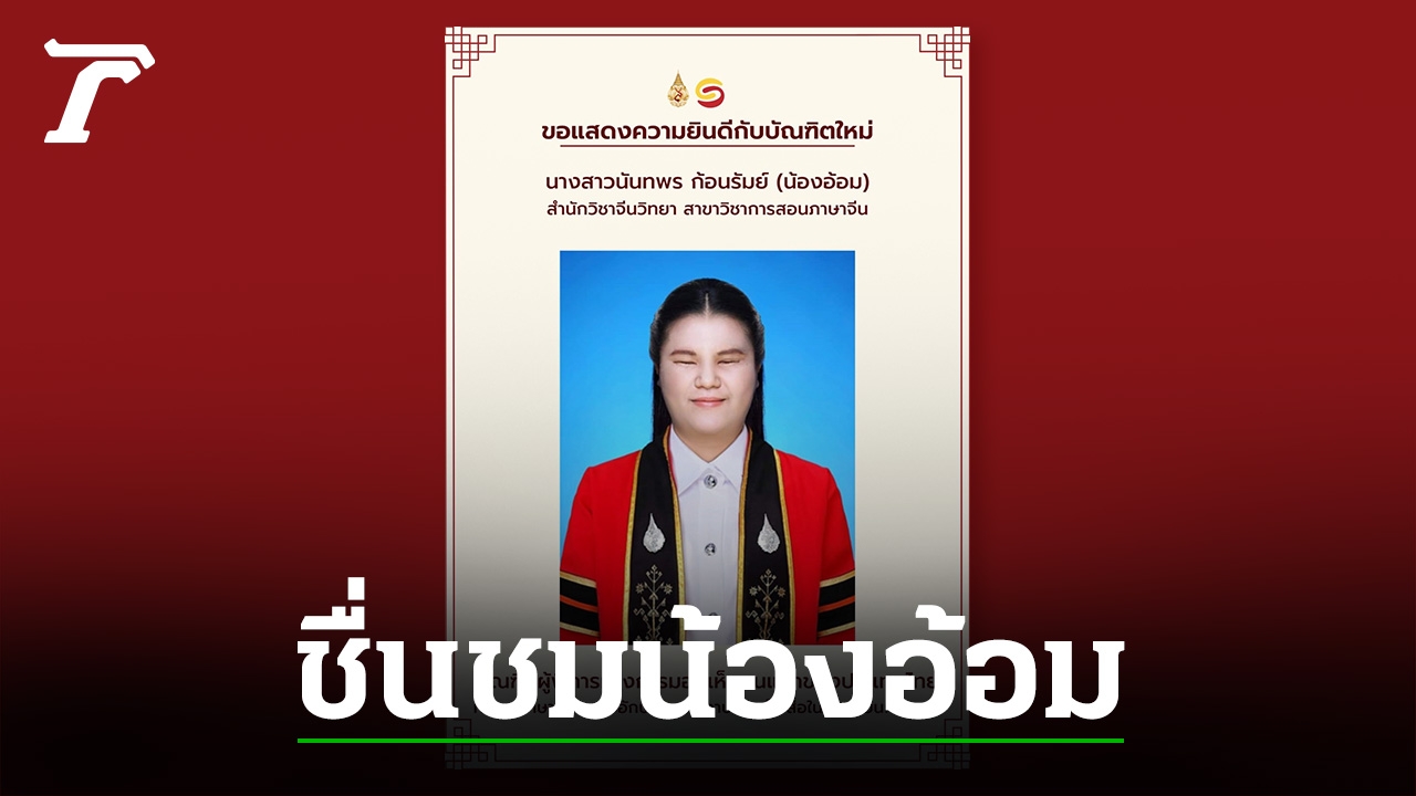 ร่วมยินดี "น้องอ้อม" บัณฑิตพิการทางการมองเห็นคนแรกของประเทศไทย จากมหาวิทยาลัยแม่ฟ้าหลวง จ.เชียงราย เรียนภาษาจีนด้วยอักษรเบรลล์ ตลอดหลักสูตร