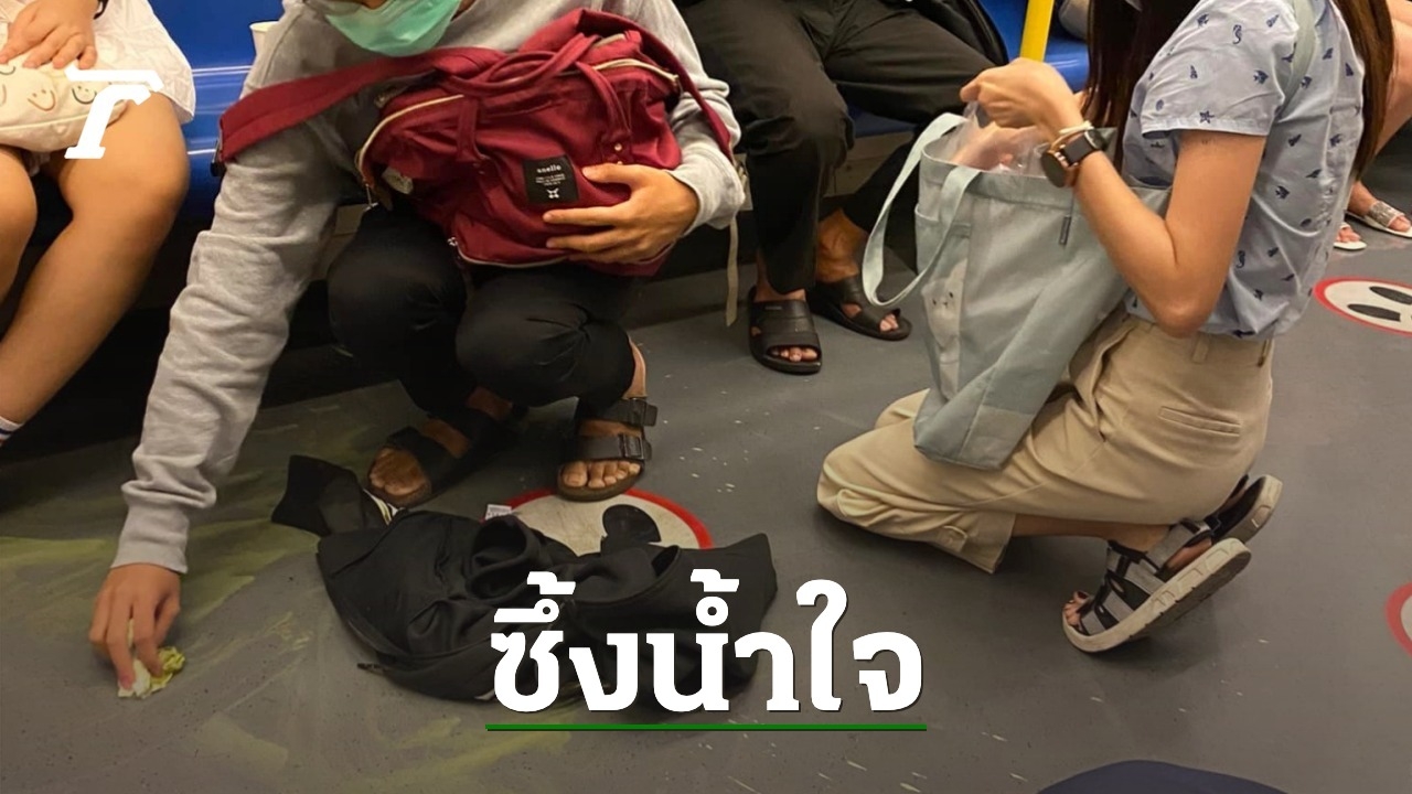 วันที่ 8 กุมภาพันธ์ 2565 ผู้สื่อข่าวรายงานว่า โลกโซเชียลมีการแชร์ภาพ พร้อมเรื่องราวสุดประทับใจ จากผู้ใช้เฟซบุ๊ก "Tiprada Katekaew" ที่โพสต์ภาพ ชายคนหนึ่งที่กำลังเช็ดน้ำที่หกบนรถไฟฟ้า โดยมีผู้โดยสารหญิงอีกคนนั่งอยู่ข้างๆ คอยช่วย พร้อมระบุข้อความว่า หลังจากกลับจากไหว้พระพิฆเนศ ก็เจอเรื่องดีๆ เลย เรื่องมีอยู่ว่า ผู้ชายเสื้อเทาแขนยาวในรูป ทำชาเขียวปั่นหกเลอะกางเกงตัวเองและพื้น น้องผู้ชายก็คงพยายามหาทิชชู หาแล้วหาอีกก็ไม่มี อยู่ๆ ผู้หญิงเสื้อฟ้าก็ยื่นเสื้อแขนยาวสีดำมาให้ พร้อมบอกว่า “น้องใช้เลย” ตอนแรกเราก็คิดว่ามาด้วยกันมั้ง แต่ไม่ใช่! น้องผู้ชายก็คงเกรงใจ ตอบกลับไปว่า “ไม่เป็นไรพี่ เดี๋ยวเสื้อพี่เลอะ” ป้าคนข้างๆ ฝั่งซ้ายก็ยื่นทิชชูมาให้ น้องผู้ชายก็ใช้แต่ทิชชูเช็ดกางเกงและพื้น ซึ่งมันก็เช็ดไม่พอ ผู้หญิงเสื้อฟ้าก็เลยเอาเสื้อสีดำตัวเองเช็ดพื้นเลย แบบกวาดให้เกลี้ยงเลย เราก็แบบอึ้งดิ เพราะไม่เคยเจอคนนี้ น้องผู้ชายก็ขอบคุณผู้หญิงเสื้อฟ้าไป ผู้หญิงเสื้อฟ้าเค้าเป็นคนหน้าตาดีนะ แถมยังน้ำใจดีอีก พอผู้หญิงเสื้อฟ้ากลับไปนั่งข้างๆ ลุงเสื้อน้ำเงินที่เดิม ลุงแกก็ชวนคุย ผู้หญิงก็คุยดีด้วย เห็นแล้วมันน่ารักเนอะ แค่คิดว่าถ้ามีคนแบบนี้อยู่เยอะๆ คงจะทำให้สังคมเราน่าอยู่ขึ้นเยอะ เนอะ ว่ามั้ย?