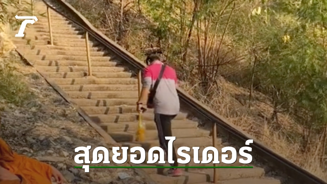โซเชียลชื่นชม ไรเดอร์รับออเดอร์แล้วต้องไปให้สุด ถือพวงมาลัยขึ้นเขา 3,790 ขั้นไปส่งให้ลูกค้าบน "เขาวงพระจันทร์"