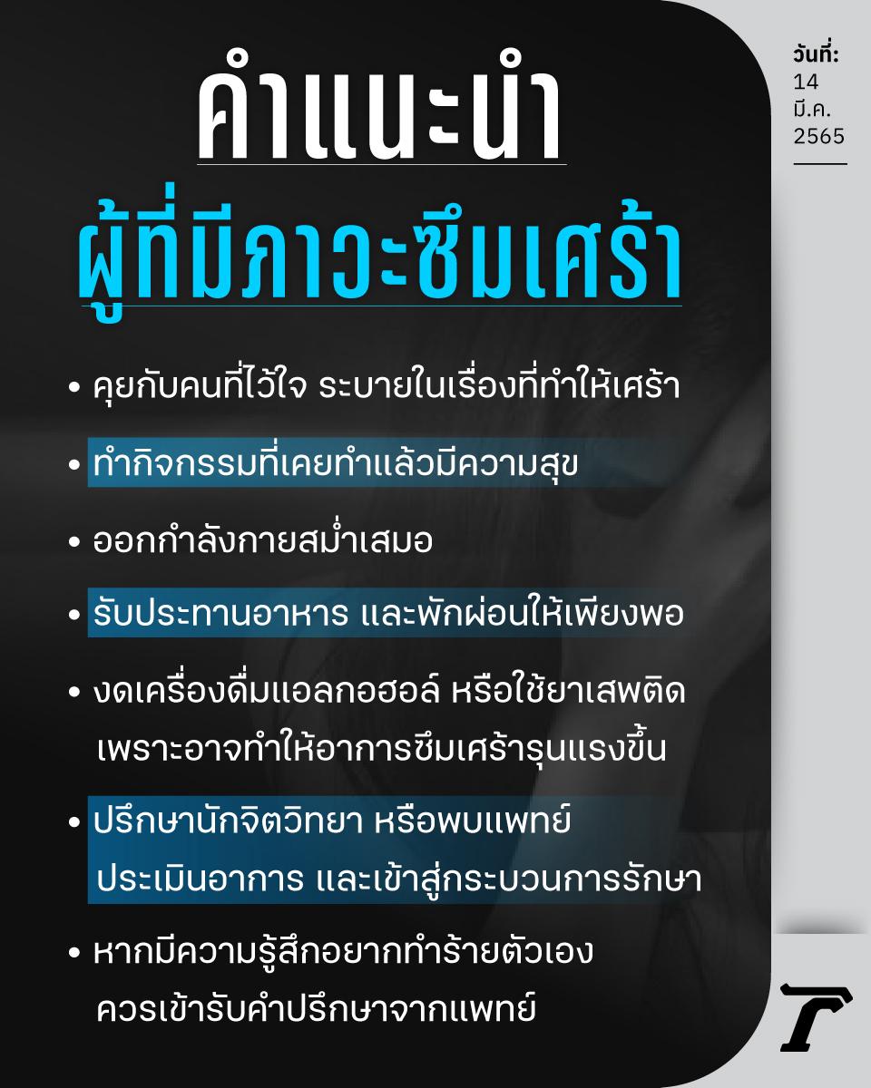โดยให้คำแนะนำสำหรับคนที่มีภาวะซึมเศร้า ดังนี้