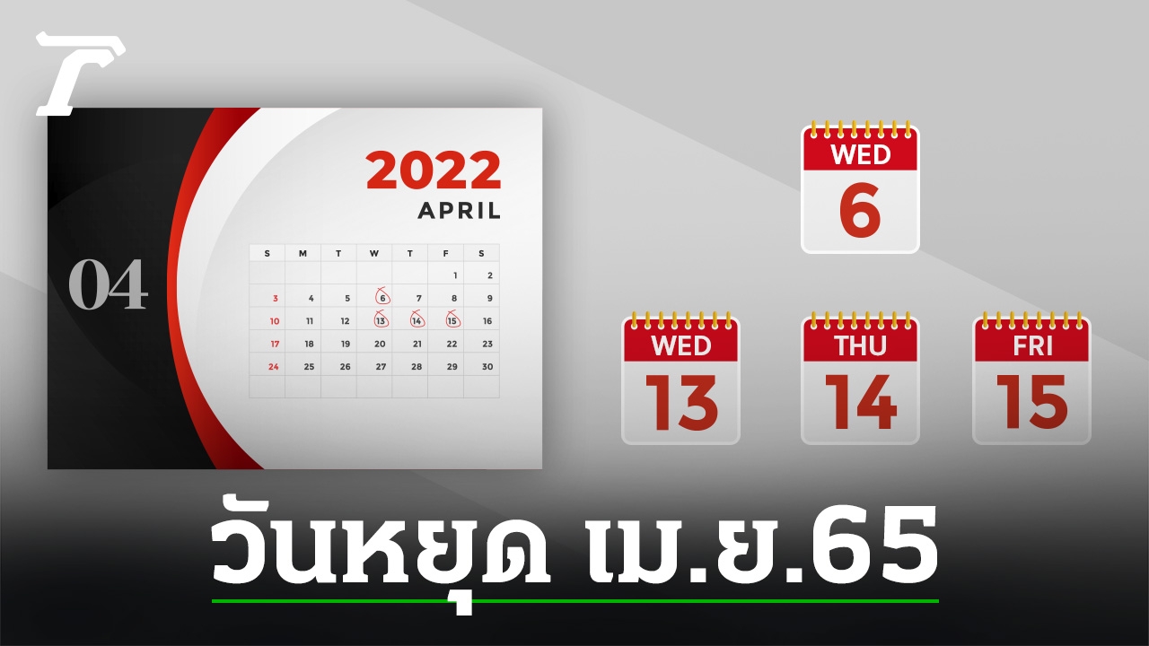 โดยวันหยุดราชการ ประจำเดือนเมษายน 2565 คือ