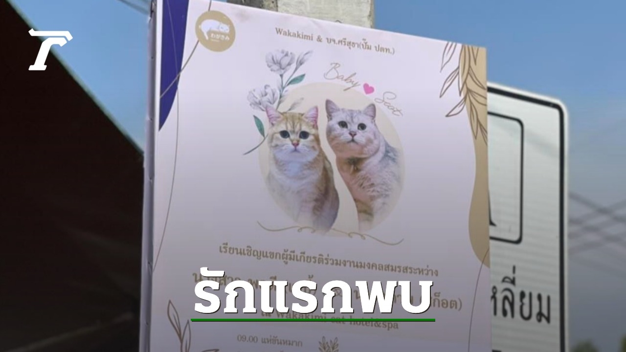 งานนี้ทำเอาทาสแมวบางคนถึงกับออกอาการอิจฉา เมื่อมีป้ายเชิญร่วมงานแต่งของ 2 เหมียว เจ้าของบอกขำๆ ไม่ได้ท้องก่อนแต่งแน่นอน