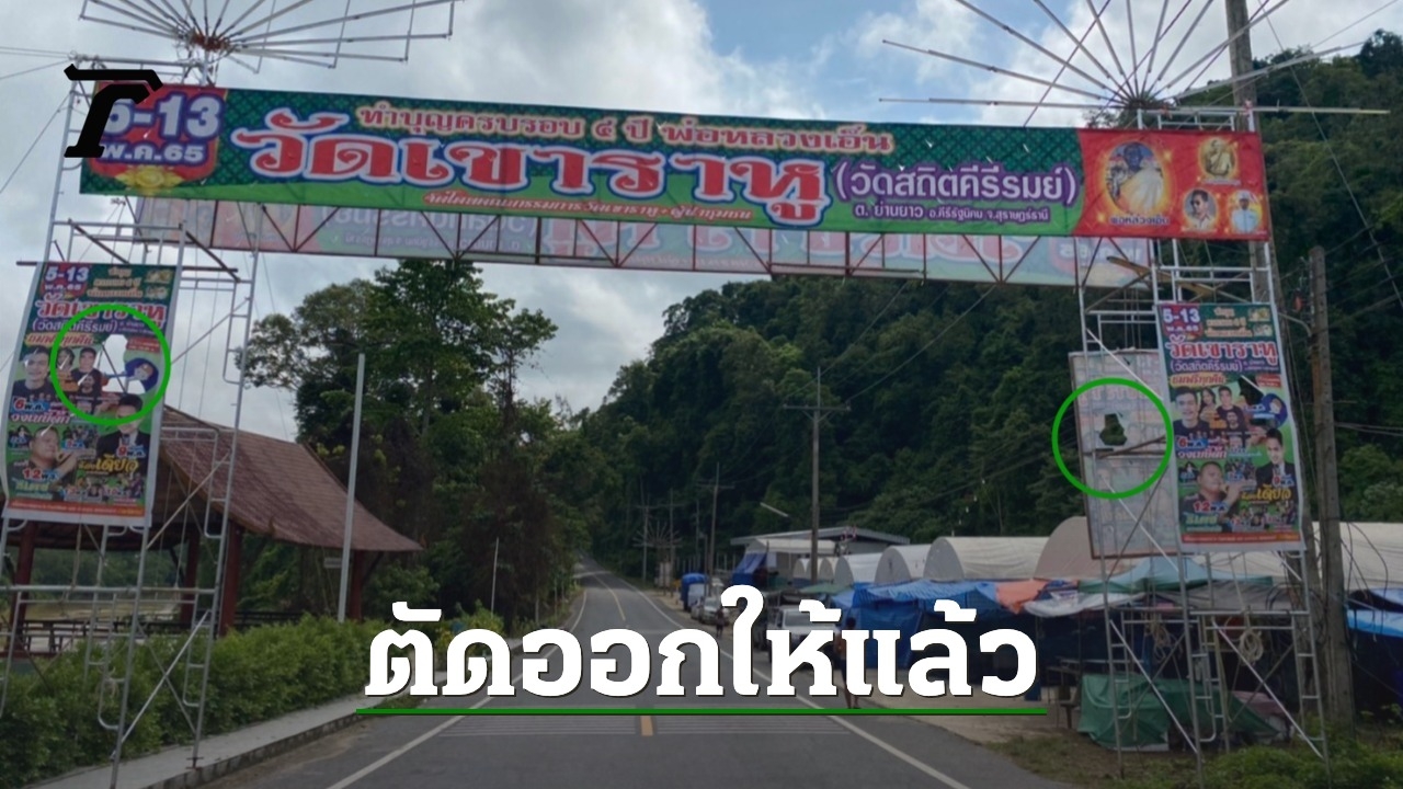 วิจารณ์แซ่ด ป้ายงานทำบุญครบรอบ 4 ปี หลวงพ่อเอ็น วัดที่สุราษฎร์ธานี ยังมีภาพอดีตพระกาโตะ เจ้าภาพแจง หลังเกิดเรื่อง หาวงดนตรีอื่นเสียบแทน ทำป้ายใหม่แล้ว