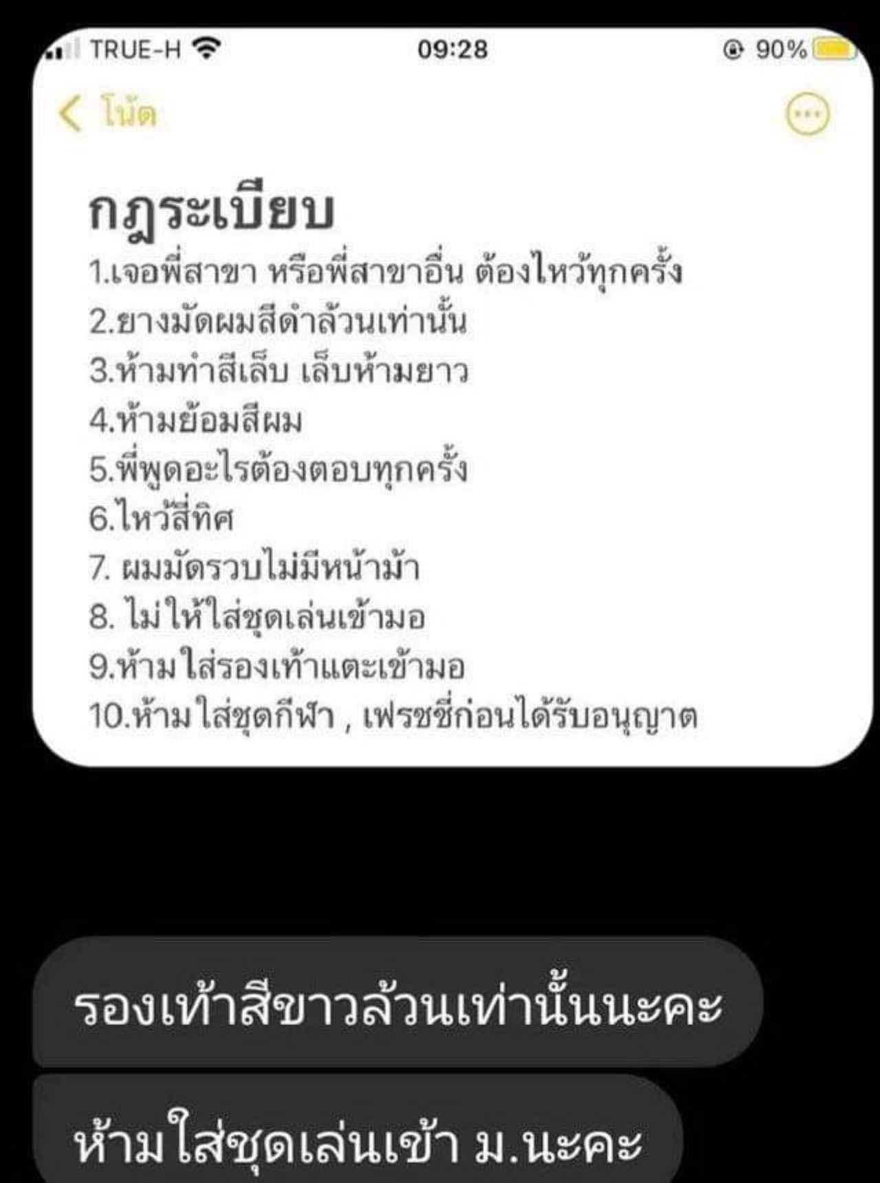 โลกออนไลน์วิจารณ์ รุ่นพี่ ม.ดัง ออกกฎระเบียบ 10 ข้อ บังคับรุ่นน้อง ไหว้รุ่นพี่ ไหว้สี่ทิศ พี่พูดอะไรต้องตอบ