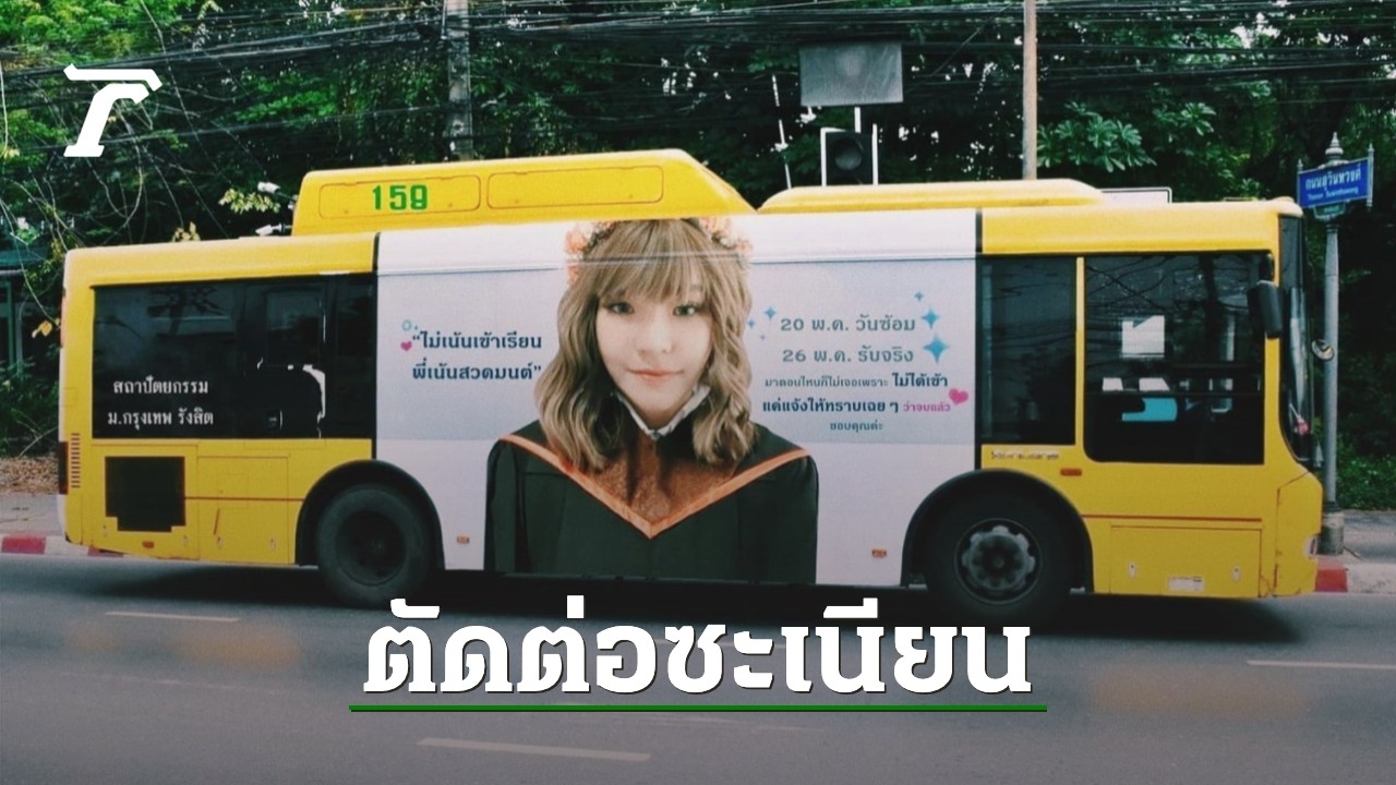 สาวชี้แจง ภาพสวมครุยติดรถเมล์ ประกาศเรียนจบ หลังกลายเป็นไวรัล คนแชร์เพียบ