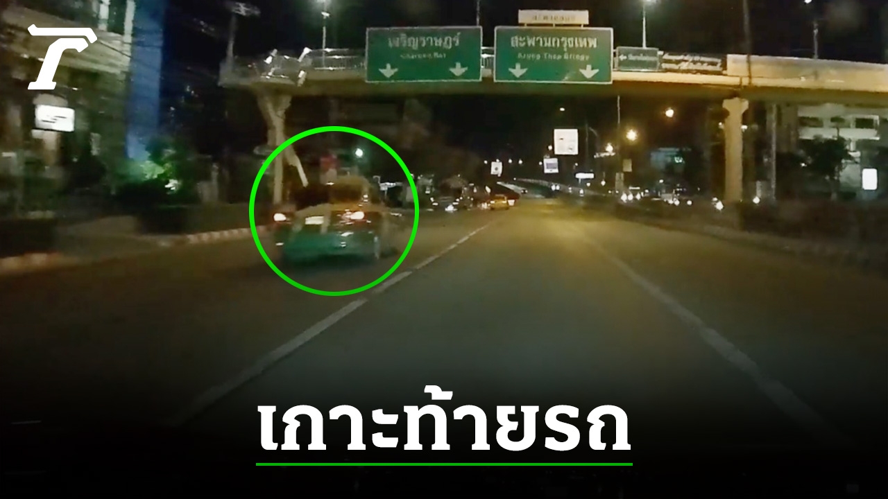 บันทึกภาพไว้ได้ เปิดนาที "เด็กรับรถ" เกาะท้ายรถแท็กซี่ของชายคลุ้มคลั่ง ขับด้วยความเร็วขึ้นสะพาน ก่อนกระเด็นตกจากรถลงแม่น้ำเจ้าพระยา