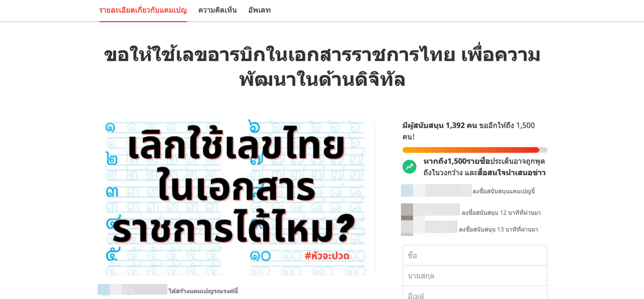 กลายเป็นกระแสร้อนแรงบนโลกออนไลน์ หลังมีการผุดแคปเปญรณรงค์หัวข้อ "ขอให้ใช้เลขอารบิกในเอกสารราชการไทย เพื่อความพัฒนาในด้านดิจิทัล" เพื่อขอรายชื่อสนับสนุนผ่านเว็บไซต์ www.change.org โดยผู้สร้างแคมเปญได้ให้เหตุผลว่า