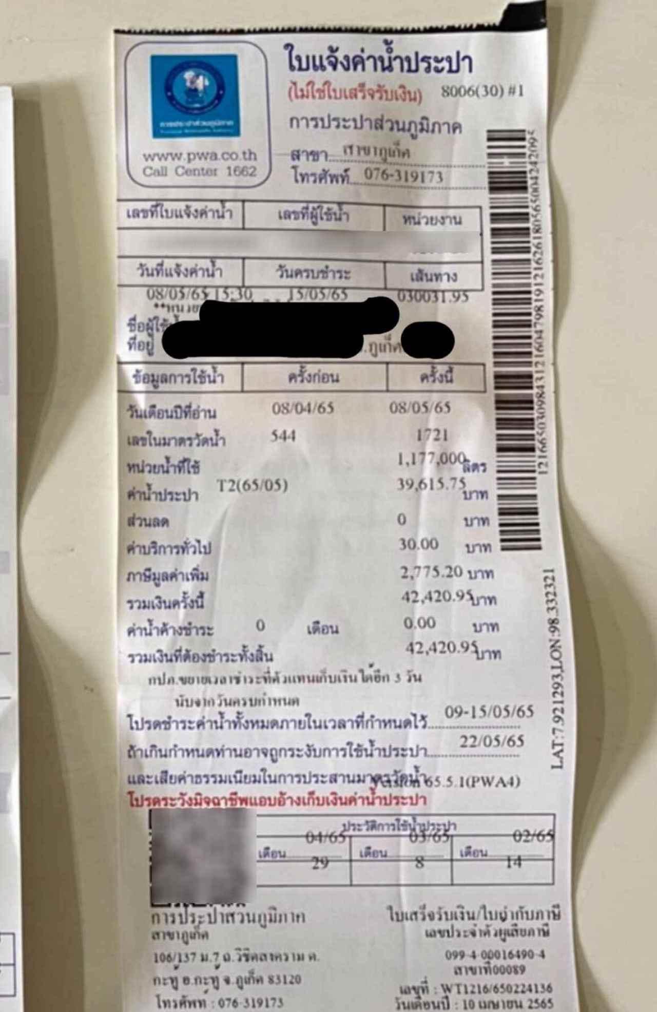 วันที่ 10 มิถุนายน 2565 มีรายงานว่า ผู้ใช้เฟซบุ๊กสาวรายหนึ่งได้โพสต์ภาพบิลค่าน้ำประปาเดือนพฤษภาคม 2565 โดยระบุว่า โดนค่าน้ำจุกๆ ไป 42,425.95 บาท จากปกติค่าน้ำที่บ้าน 100-200 บาท