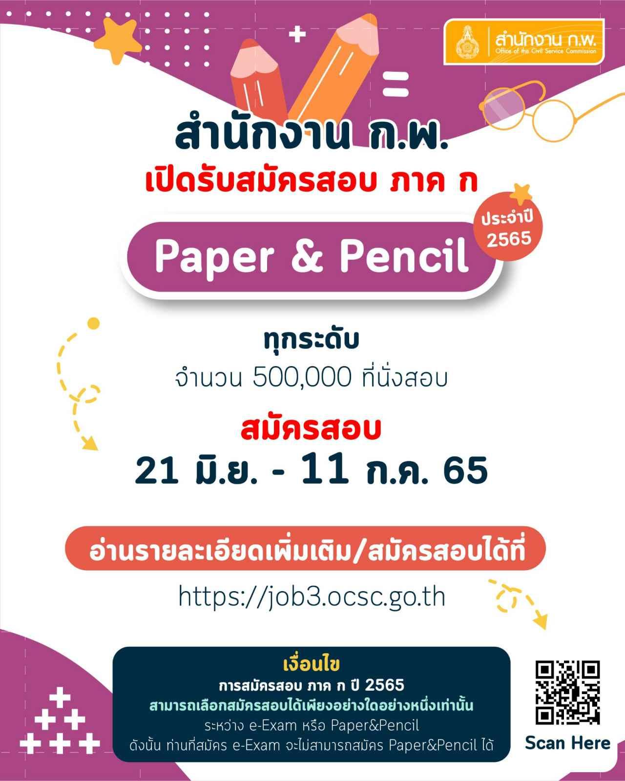 อย่างไรก็ตามในการสมัครสอบ ภาค ก ปี 2565 สามารถเลือกสมัครสอบได้เพียงอย่างใดอย่างหนึ่งเท่านั้น ระหว่าง e-Exam หรือ Paper & Pencil ดังนั้น ผู้ที่สมัครสอบแบบ e-Exam แล้ว จะไม่สามารถสมัครสอบรอบนี้ได้ หากไม่ได้กรอกข้อมูลล่วงหน้า ท่านยังสามารถสมัครสอบได้ตามปกติ แต่อาจจะใช้เวลาในการกรอกข้อมูลเพิ่มขึ้น