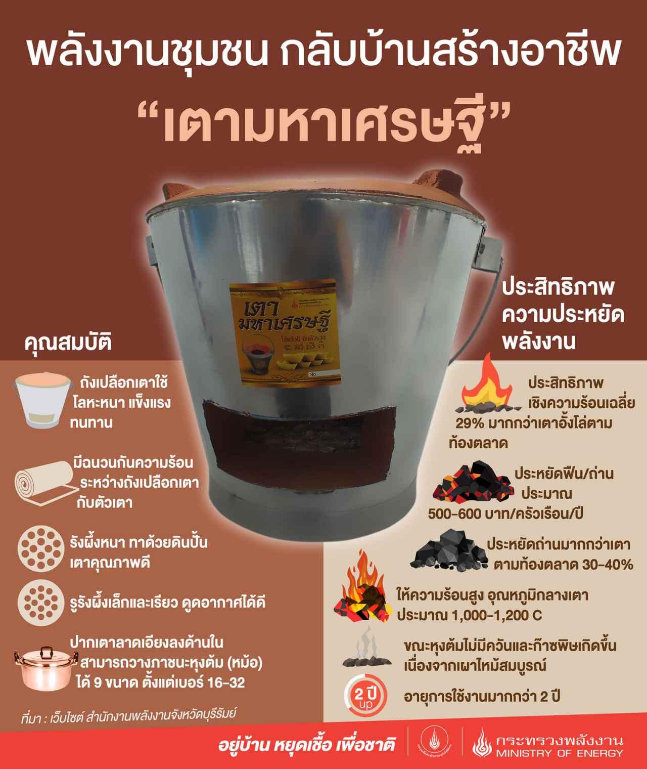 วันที่ 21 มิถุนายน 2565 แฟนเพจ กรมพัฒนาพลังงานทดแทนและอนุรักษ์พลังงาน หรือ พพ. ได้เผยภาพ เตามหาเศรษฐี ร้อนสูง ประหยัดถ่าน ทนทาน ช่วยประหยัดเงิน พร้อมข้อความระบุว่า วันนี้ พพ. ขอนำเสนอ "เตาหุงต้มประสิทธิภาพสูง" หรือ "เตาซุปเปอร์อั้งโล่" ซึ่งเป็นเตาที่พัฒนาขึ้นมาทดแทนเตาอั้งโล่ตามท้องตลาดทั่วไป
