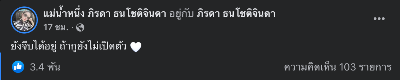 ทั้งนี้ หลังจากที่ประกาศออกไปว่าโสด นอกจากจะมีคนเข้ามาโพสต์ให้กำลังใจด้วยว่า นอกจากโสดแล้ว ยังสวย แซ่บอีกด้วย