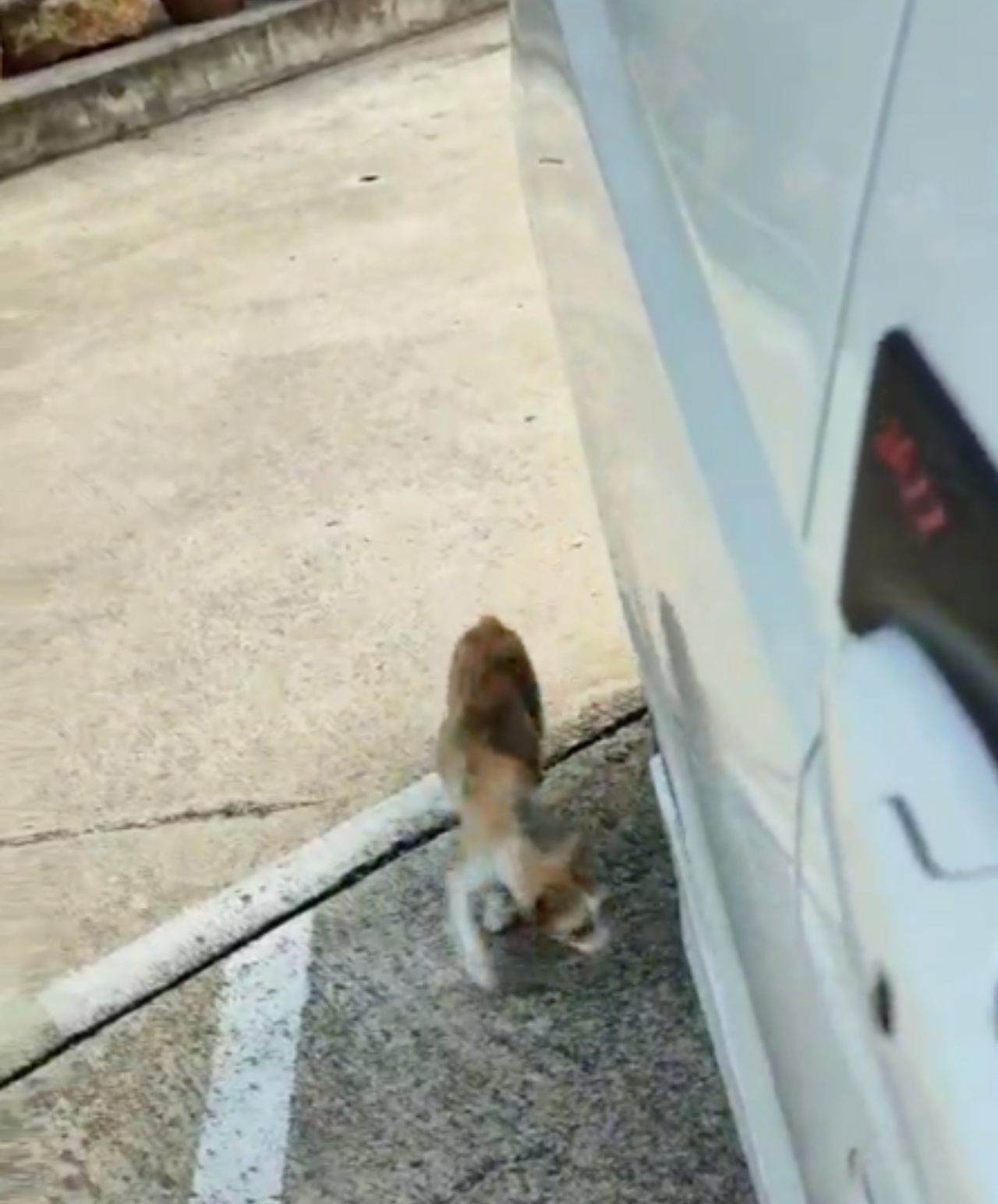เจ้าของคลิป เล่าอีกว่า ระหว่างทางไปทำงานรู้สึกลุ้นมาก เพราะกลัวแมวลงจากรถตอนอยู่บนถนน ระหว่างทางก็ยังได้ยินเสียงแมวร้องเป็นระยะ จนมาถึงที่ทำงานซึ่งจะจอดจุดนี้เป็นประจำ จู่ๆ ลูกแมวก็ร้องเสียงดังมากหลายครั้ง สักพักแม่แมวที่นั่งรออยู่แล้วได้เดินเข้ามาหา แล้ววิ่งหายเข้าไปใต้ท้องรถ และคาบลูกแมวออกมาตามที่ปรากฏในคลิป