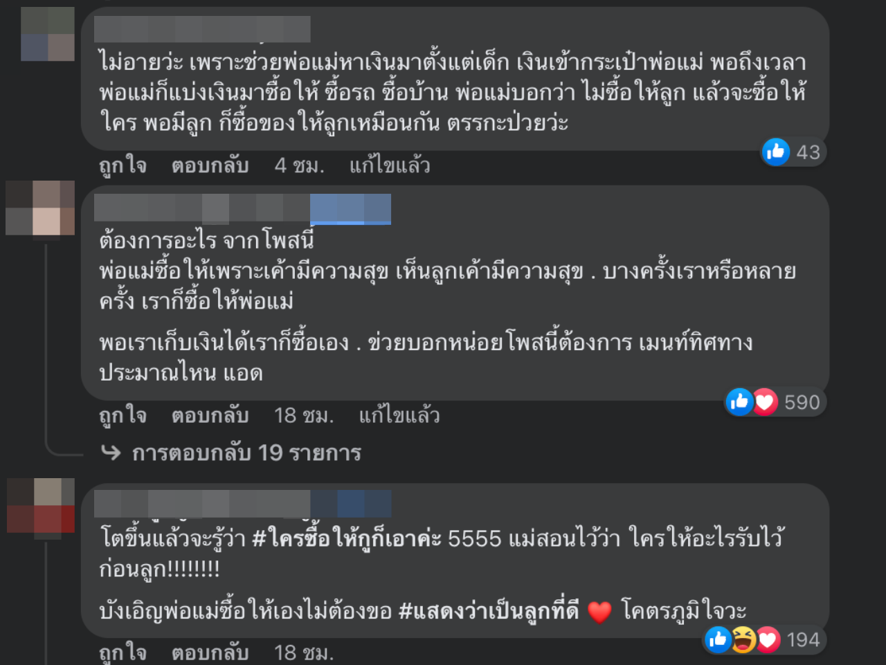 สารพัดความเห็นชาวเน็ต เห็นค้าน หลังเพจดังแชร์ไวรัลคำคม เมื่อคุณโตขึ้น จะอายกับคำว่าพ่อแม่ซื้อให้ แล้วจะภูมิใจกับคำว่า ซื้อเอง