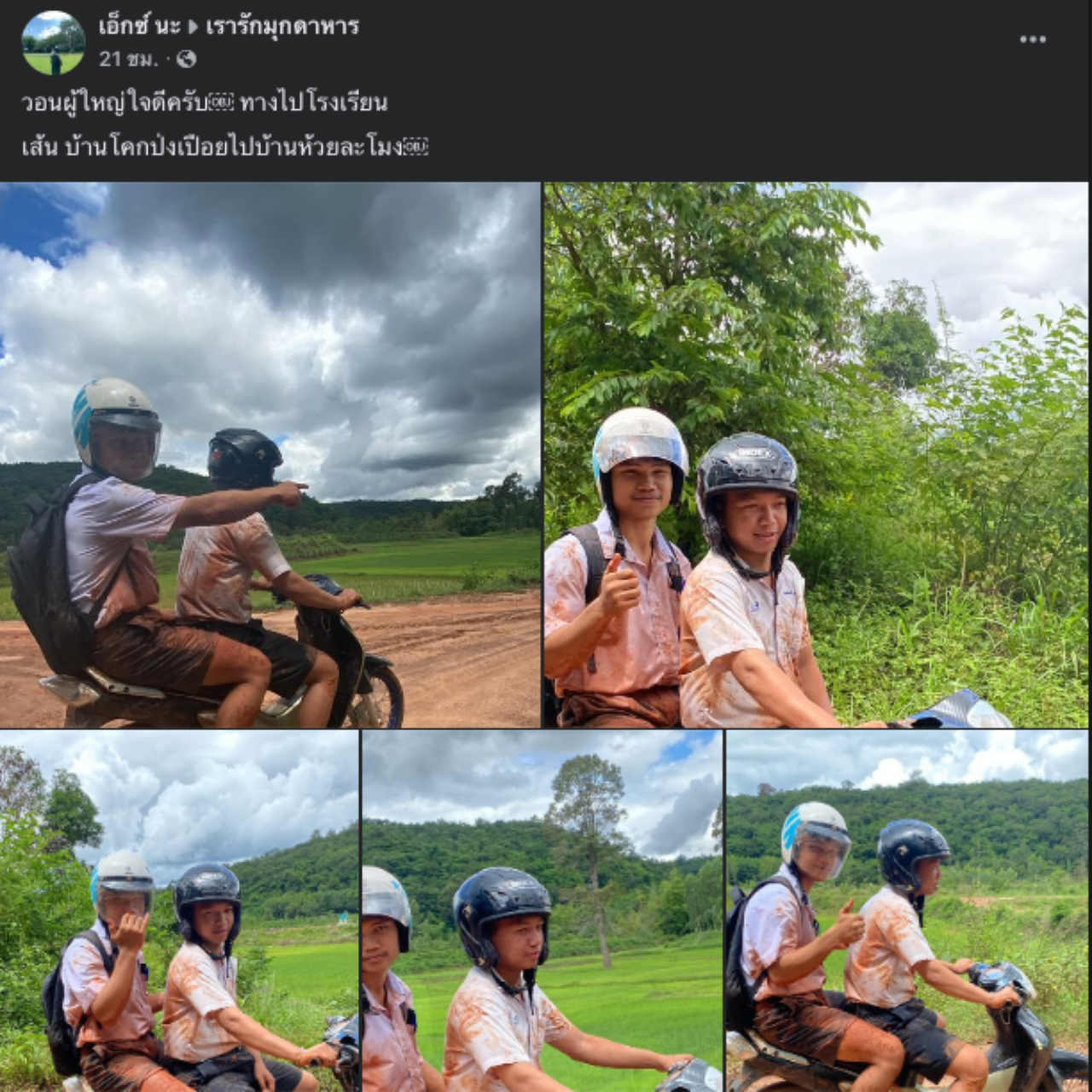 จากกรณีผู้ใช้เฟซบุ๊ก "เอ็กซ์ นะ" ซึ่งเป็นเด็กนักเรียน ได้โพสต์ภาพขณะที่ตนเองกับเพื่อน ขี่จักรยานยนต์ไปโรงเรียนกับเพื่อน ผ่านถนนที่มีลักษณะเป็นทะเลโคลน เนื่องจากฝนที่ตกลงมาอย่างต่อเนื่อง นอกจากนี้ ระหว่างทางเกิดลื่นล้ม ทำให้ชุดนักเรียนเลอะโคลนเต็มไปหมด พร้อมแคปชั่นว่า "วอนผู้ใหญ่ใจดีครับ ทางไปโรงเรียน เส้นบ้านโคกป่งเปือยไปบ้านห้วยละโมง"