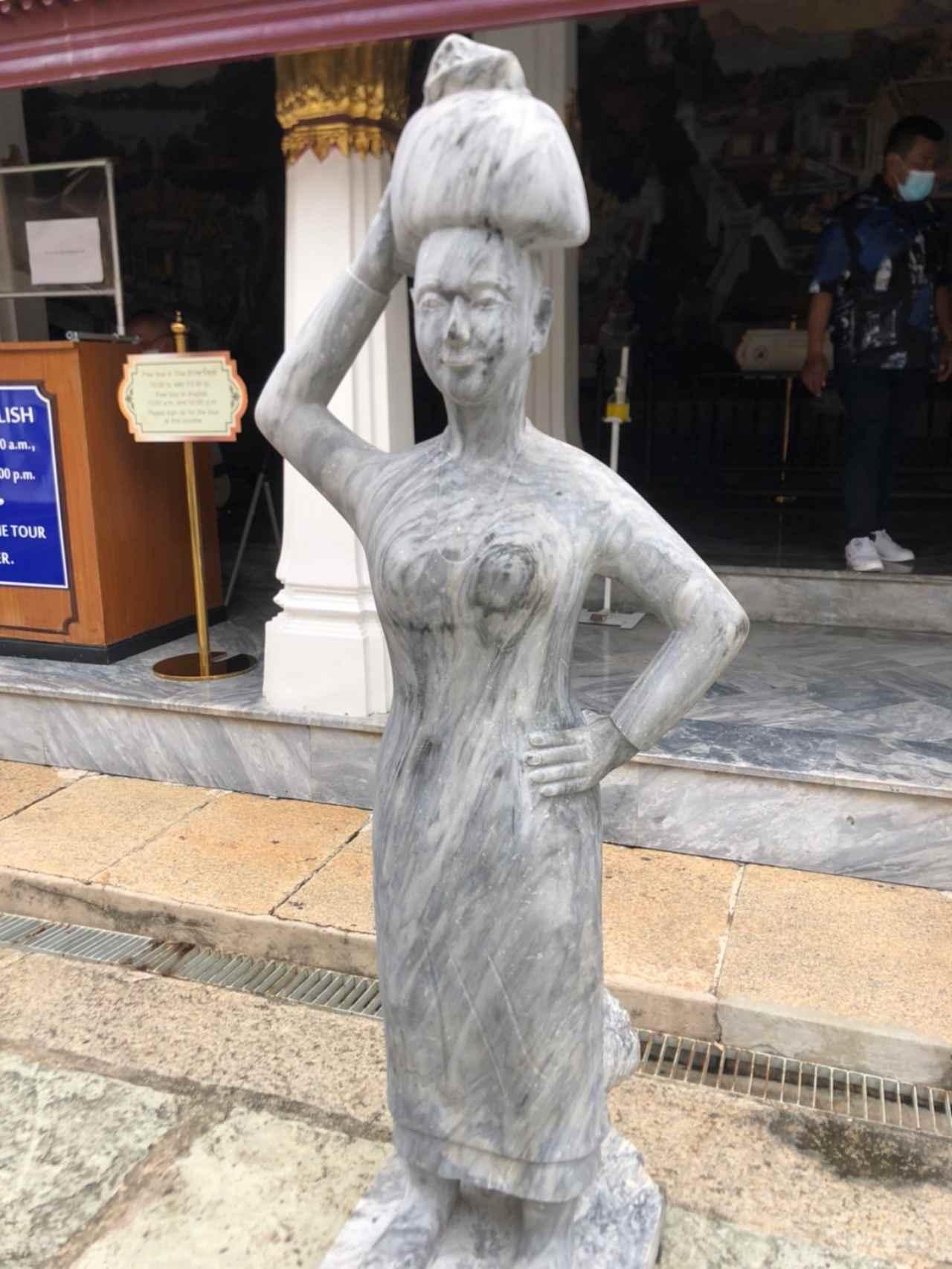 ส่วนข้อมูลที่มีการบอกเล่ากันมา คือรูปปั้นตุ๊กตาหินอ่อนทั้งหมดนี้เคยนำไปจัดโชว์ในงานเฉลิมฉลองกรุงสยาม 100 ปีในสมัยรัชกาลที่ 5 ซึ่งลักษณะรูปปั้นจะเป็นบุคคลมีชื่อเสียงในสมัยนั้น แต่หลังจากที่มีการเฉลิมฉลองจบหลังจากนั้นอีก 40 ปีก็ไม่ปรากฏข้อมูลของรูปปั้นนี้จนผ่านไป 150 ปี มีการมาขุดพบและนำมาจัดแสดงให้นักท่องเที่ยวและประชาชนได้ชมซึ่งถือเป็นศิลปะที่มีความงดงามและคงไว้ซึ่งเอกลักษณ์.