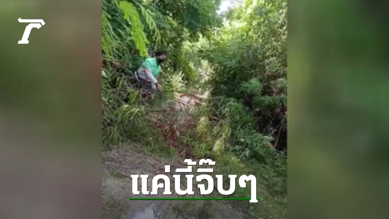 จากนั้นยังโพสต์คลิป ซึ่งเป็นภาพระหว่างทางที่เดินทางไปยังบ้านของลูกค้า ซึ่งนอกจากจะเป็นซอยที่มีต้นไม้ขึ้นรกแล้ว ยังมีต้นไม้คล้ายต้นกระถินล้มขวางปิดกั้นเส้นทางอยู่ ก่อนที่ไรเดอร์คนดังกล่าว จะใช้มีดฟันกิ่ง และพยายามยกต้นไม้ที่ล้มขวางถนนอยู่ออก