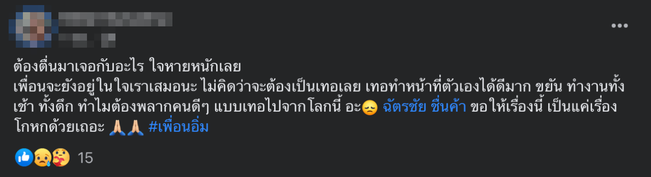 ทั้งนี้ เพื่อน และคนสนิทของนายฉัตรชัย ได้มีการโพสต์ข้อความไว้อาลัยต่อการจากไปในครั้งนี้เป็นจำนวนมาก.