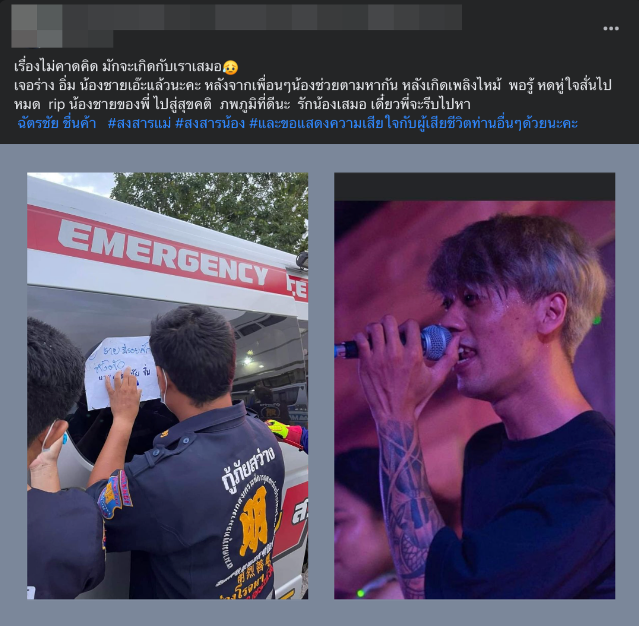 จากนั้นพี่สาวจะโพสต์ข้อความอีกครั้งว่า "เรื่องไม่คาดคิด มักจะเกิดกับเราเสมอ เจอร่าง อิ่ม น้องชายเอ๊ะแล้วนะคะ หลังจากเพื่อนๆ น้องช่วยตามหากัน หลังเกิดเพลิงไหม้ พอรู้ หดหู่ใจสั่นไปหมด rip น้องชายของพี่ ไปสู่สุขคติ ภพภูมิที่ดีนะ รักน้องเสมอ เดี๋ยวพี่จะรีบไปหา"