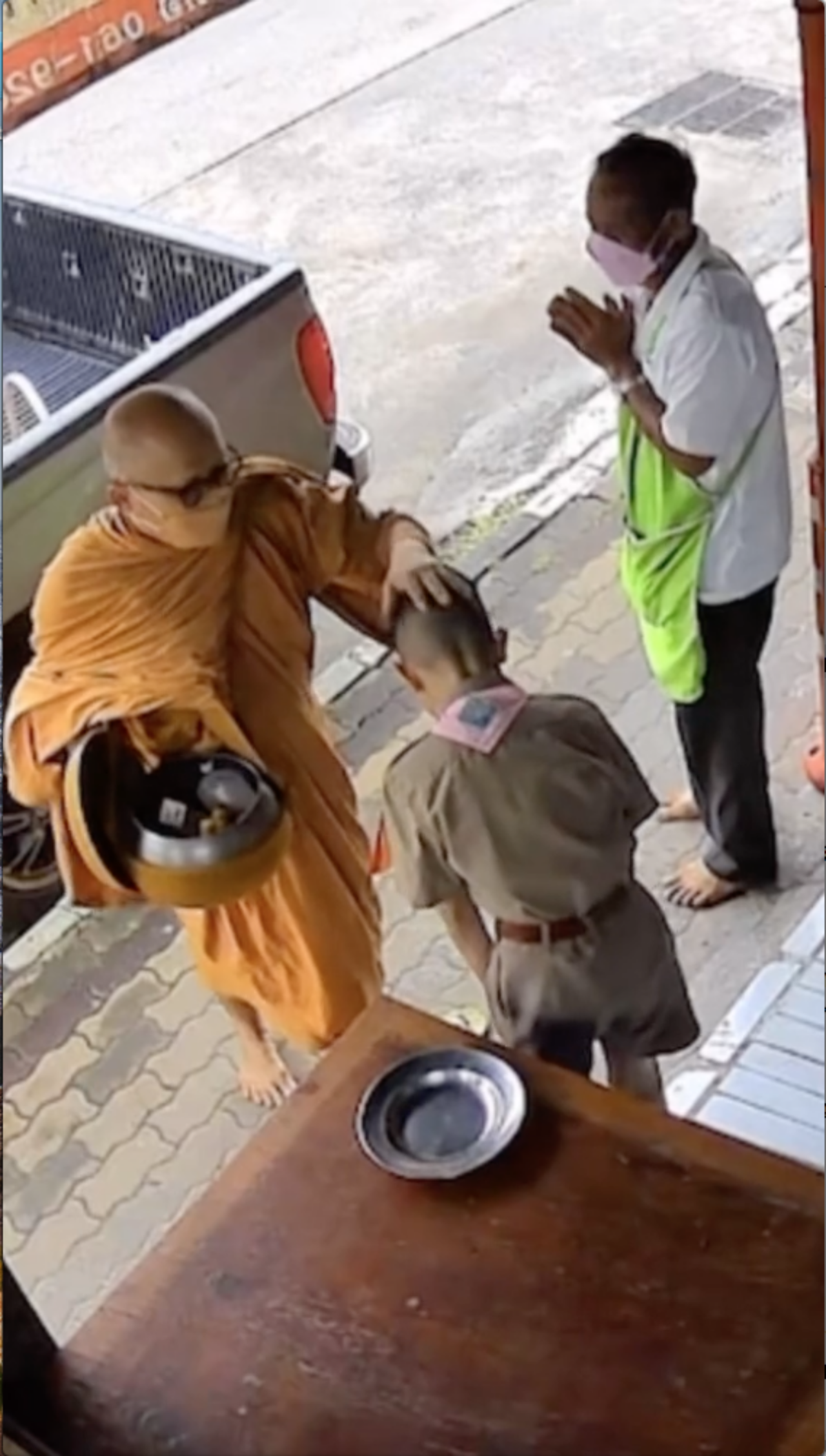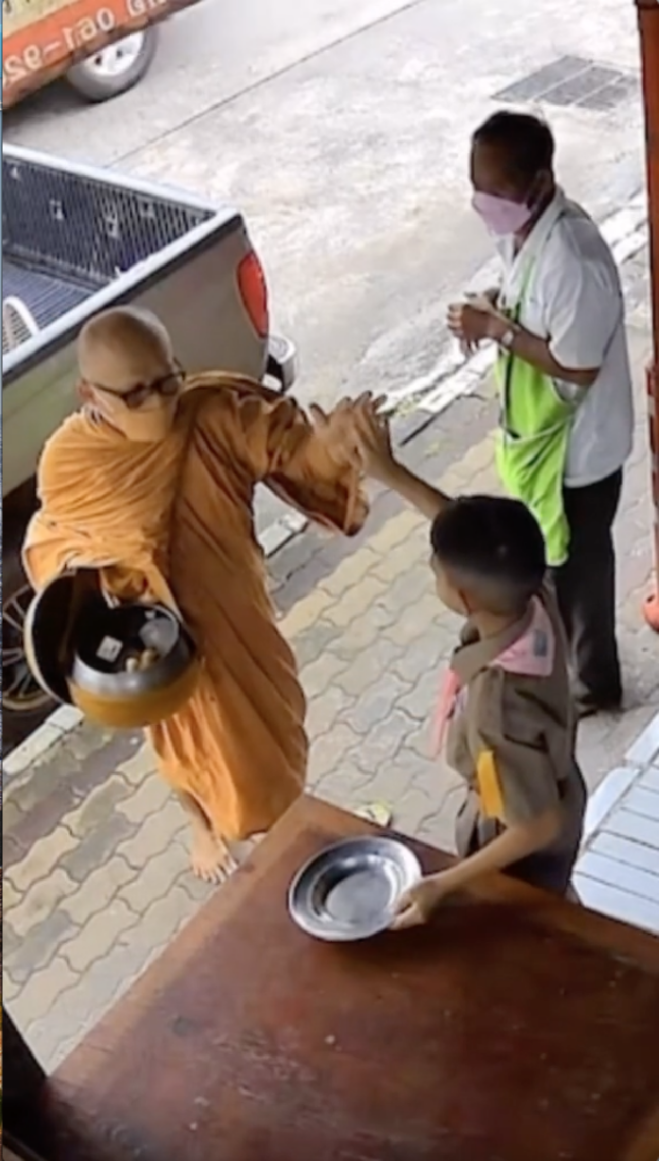 สำหรับคลิปวิดีโอดังกล่าว ได้บันทึกเหตุการณ์ขณะที่ หนุ่มน้อยชุดลูกเสือ กำลังใส่บาตรพระอยู่หน้าบ้าน และในจังหวะที่หลวงพ่อกำลังยกมือลูบหัวหวังให้พร หนูน้อยในคลิปก็ได้ยกมือขึ้นแปะทักทายกลับ เป็นท่าไฮไฟฟ์อย่างลืมตัว เมื่อนึกขึ้นได้ก็รีบก้มหัว น้อมรับพรจากพระด้วยความเขินอาย