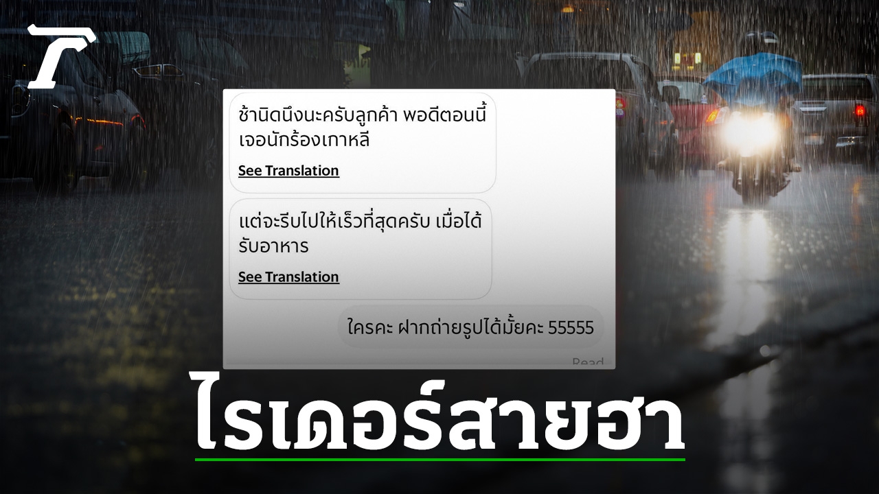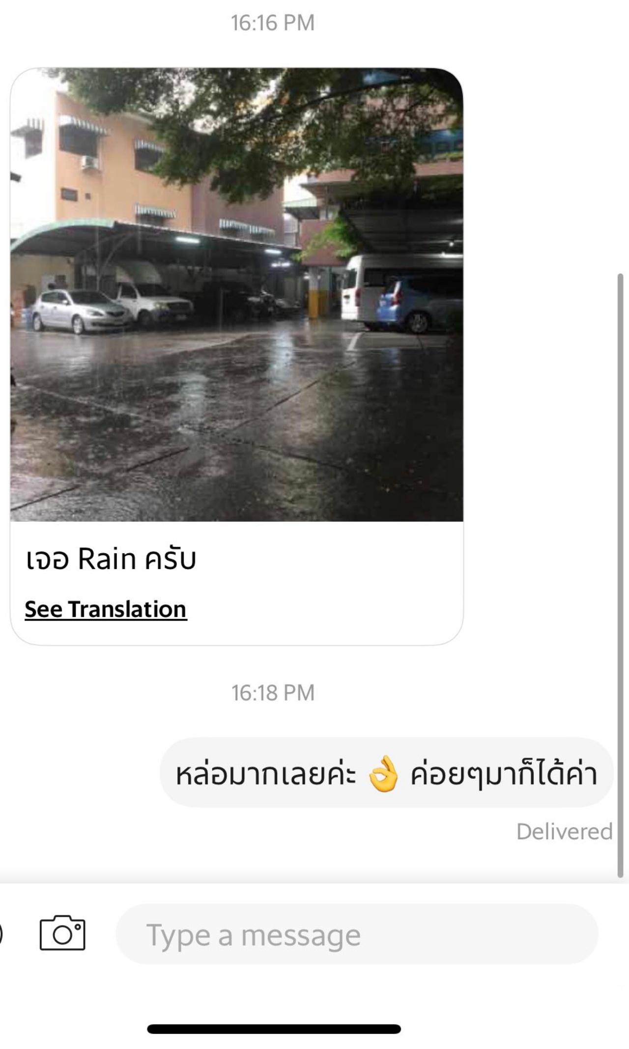 เท่านั้นไม่พอ ไรเดอร์ยังตบมุกไม่หยุด บอกลูกค้าสาว ว่าช้านิดนึง เพราะเจอนักร้องเกาหลีแต่จะรีบไปให้ไวที่สุด ด้านลูกค้าสงสัย ถามกลับไปอีกว่าเป็นใคร ฝากถ่ายรูปได้ไหม งานนี้ทำเอาขำพรืด เพราะนักร้องเกาหลีที่ไรเดอร์เจอไม่ใช่ใครที่ไหน แต่เป็นภาพของฝนตก ที่เล่นมุกชื่อพ้องกับคำว่า เรน (Rain) หรือ ชองจีฮุน นักร้องและนักแสดงชาวเกาหลีนั่นเอง ลูกค้าหมดคำจะพูด ตอบกลับไปว่า หล่อมาก ค่อยๆ มาก็ได้