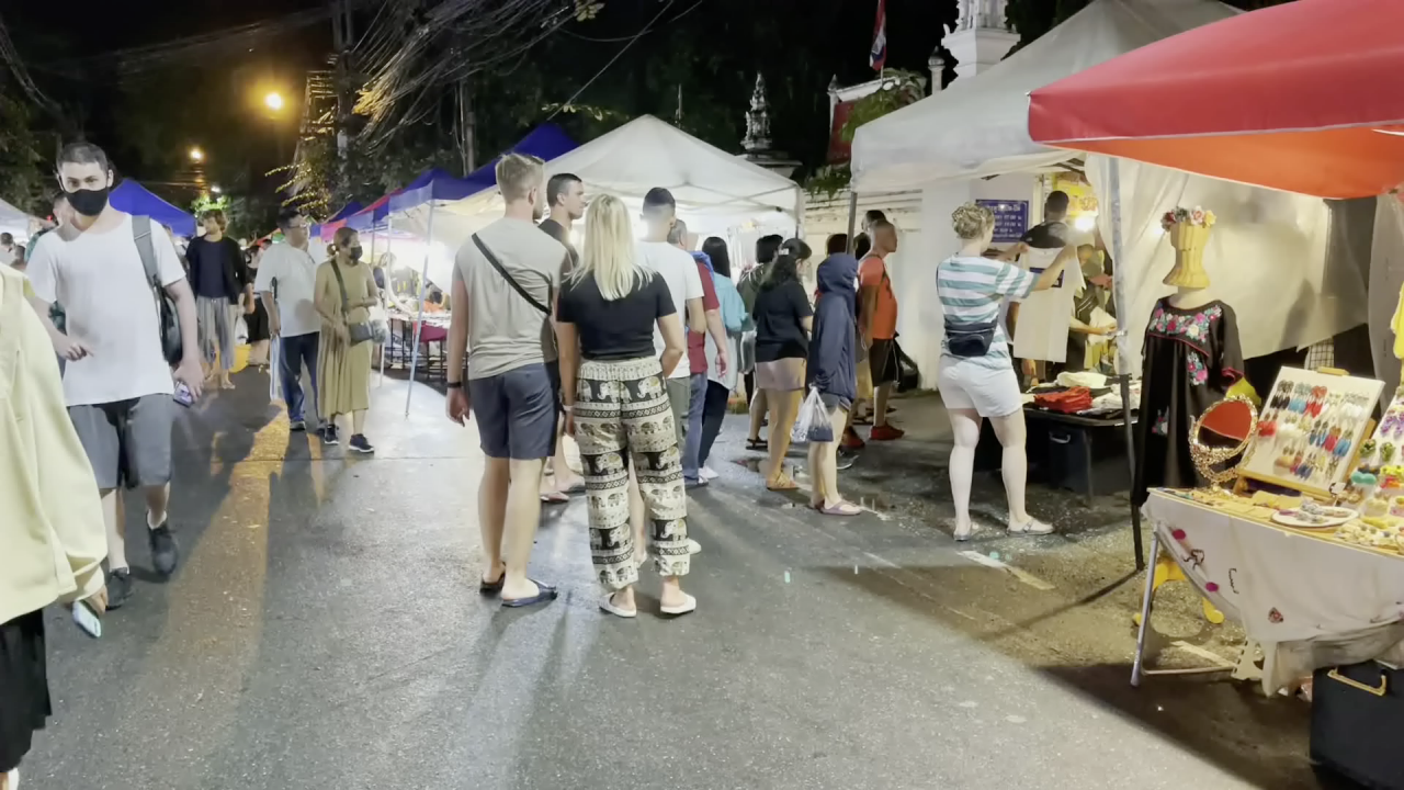 นางสายสวาท ชูพันธ์ เจ้าของร้านขายกางเกงลายช้าง บนถนนคนเดินวันอาทิตย์ บอกว่า ช่วงนี้ขายดีมาก วัยรุ่นมาหาซื้อกันคึกคัก เพราะถ้าใครไม่มีใส่ถือว่าล้าหลังไม่ทันแฟชั่น ยอมรับว่ารู้สึกงงที่กางเกงลายช้างกำลังมาฮิตอีกครั้ง หลังจากเคยฮิตมาก่อนที่โควิด-19 ระบาด เมื่อ 2 ปีก่อน และหายไปพักหนึ่ง แต่หลังการเปิดประเทศมีนักท่องเที่ยวเดินทางมา กางเกงลายช้างก็กลับมาฮิตอีกครั้ง