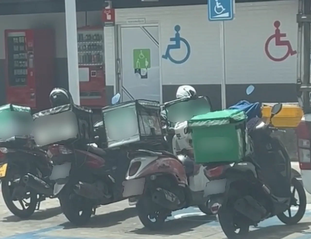 ปรากฎว่ามีรถมอเตอไซค์ของไรเดอร์ส่งอาหาร จอดเรียงกันเต็มพื้นที่ไปหมด จนกลายเป็นภาพที่สร้างความหดหู่ ให้กับคนที่พบเห็นเป็นอย่างมาก