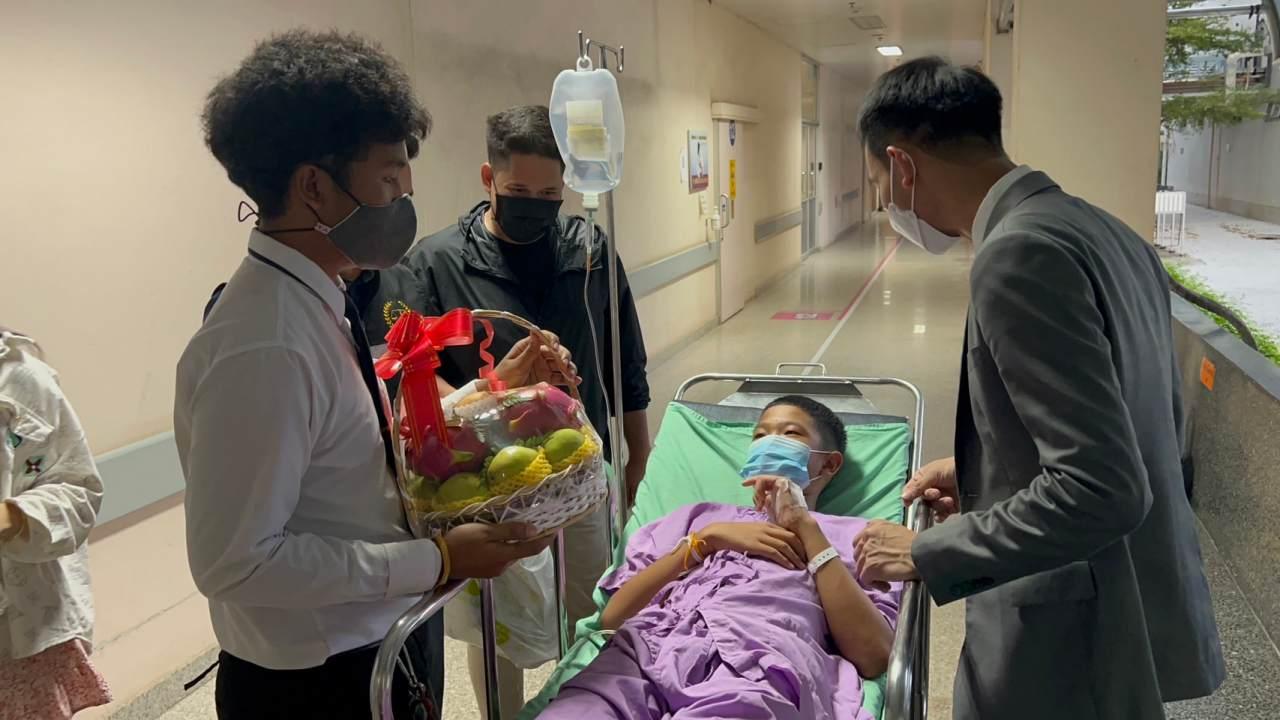 ทางด้าน นายอรรถชัย หรือ น้องบาส เล่าว่า มีคนชื่อ "องุ่น" มาพบที่โรงพยาบาล บอกว่ามีคนโอนเงินมาให้ จะมามอบที่โรงพยาบาล โดยมอบเป็นซองกับทุกคน ต่อมาตนไปเห็นในเพจว่ามอบให้น้องๆ จำนวน 15,000 บาท โดยให้คนละ 5,000 บาท ตนคิดว่าไม่น่าจะถึง เพราะยายน้องเรดิโอบอกว่าได้แค่ 1,000 บาท ซึ่งไม่เป็นไปตามที่โพสต์ และได้มามอบเงินใส่ซองที่บ้าน แล้วขอยืมเงิน 1,000 บาท จะไปเติมน้ำมัน แล้วชวนคุยจนลืม ตอนกลับก็เอาซองที่มอบให้ไปด้วย พอยายมาถามหาซอง ก็พบว่าไม่มี เมื่อโทร.ไปถามก็บอกว่าลืมไว้ในกระเป๋า จากนั้นก็ได้โอนเข้าบัญชีธนาคาร 4,000 บาท ที่ตนสงสัยก็คือ ถ้าจะนำเงินมาให้ แล้วทำไมไม่ให้ 5,000 บาทไปเลย จึงอยากให้ออกมาชี้แจง