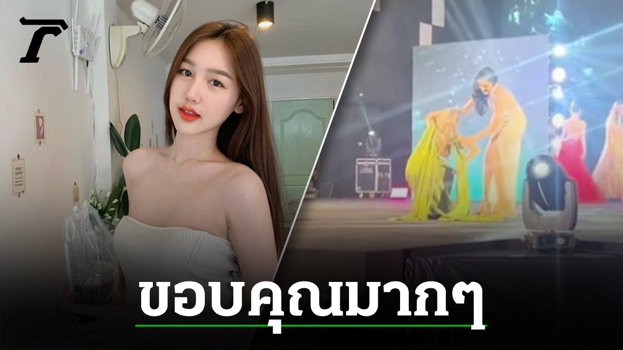สวยแล้วยังใจดี เปิดวาร์ป "น้องพูมมี่" สาวสวยช่วย "โอลีฟ" แม่ค้าสาวเน็ตไอดอล หลังเดินสะดุดชุดราตรี ล้มกลางเวทีประกวด Miss & Mister Surgery Thailand 2022