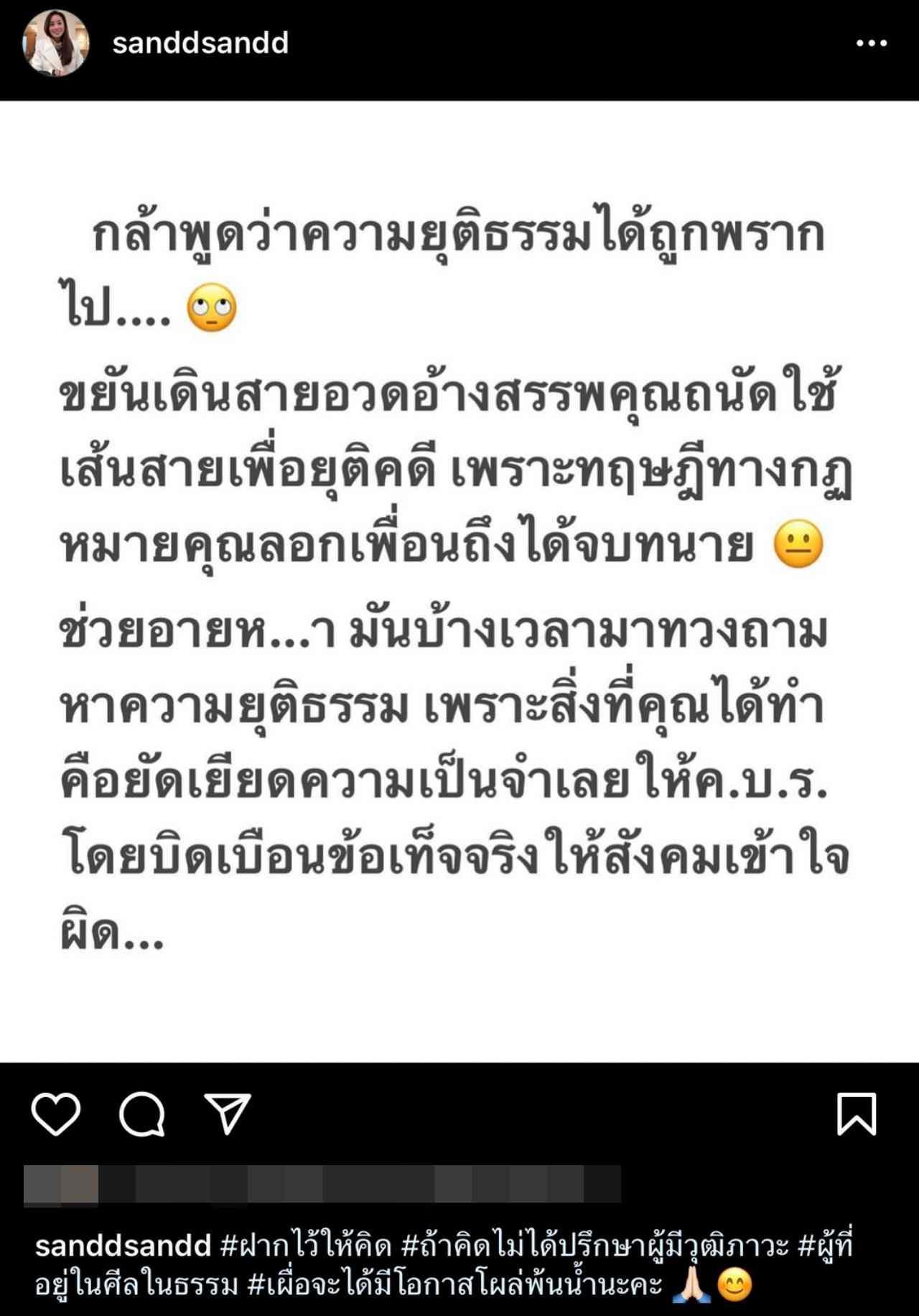 ที่มาจาก เฟซบุ๊ก ษิทรา เบี้ยบังเกิด เลขาธิการมูลนิธิทีมงานทนายประชาชนฯ, อินสตาแกรม @sanddsandd