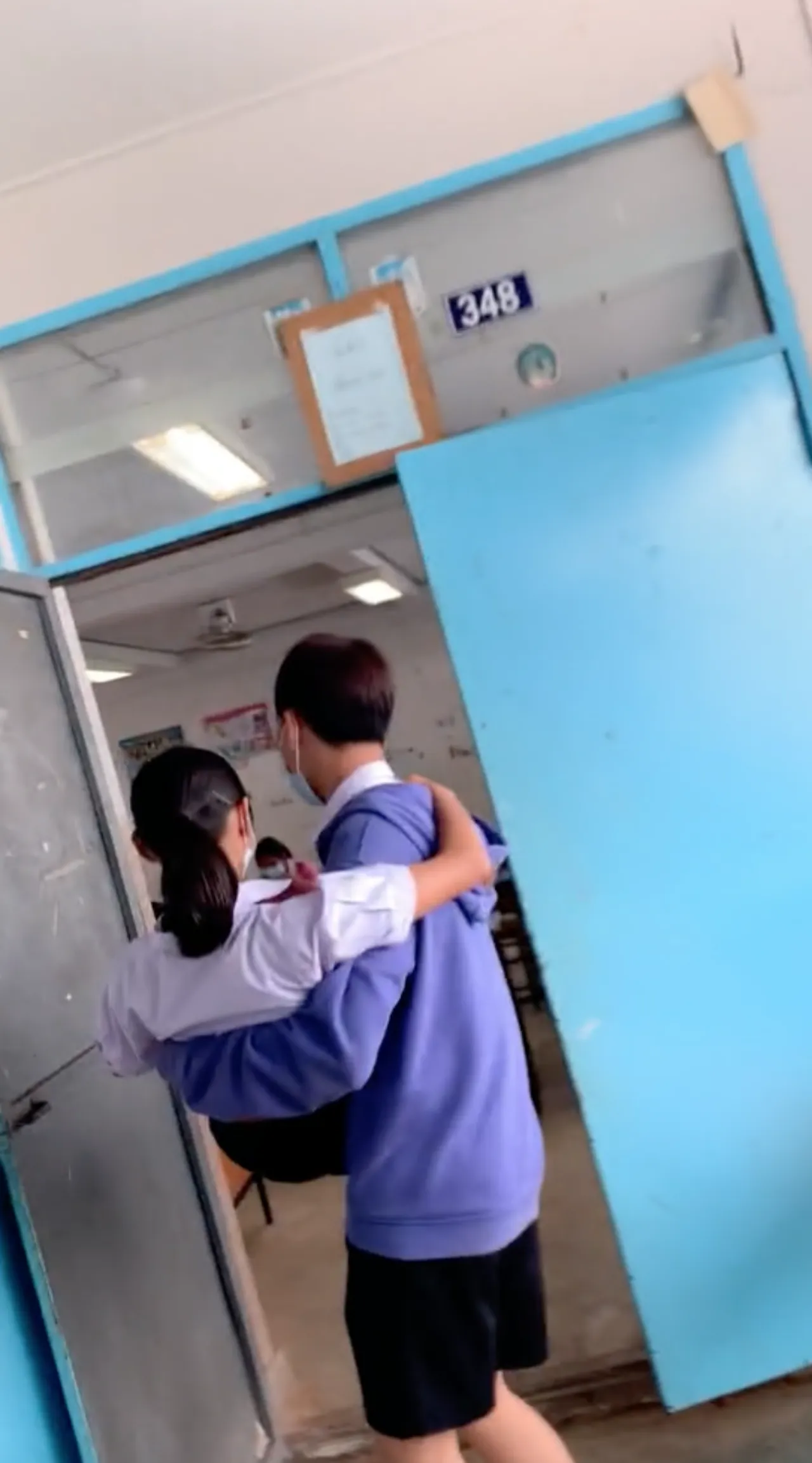 ในคลิปวิดีโอ เป็นเหตุการณ์ขณะที่นักเรียนชาย อาสาอุ้มเพื่อนผู้หญิงเดินขึ้นบันได เนื่องจากบาดเจ็บที่ขาและมีบาดแผลเต็มไปหมด ซึ่งในระหว่างทางที่อุ้มขึ้นไปนั้น จะต้องเดินขึ้นบันไดหลายขั้น ทำให้น้องนักเรียนชาย บ่นเหนื่อย หมดแรงบ้าง