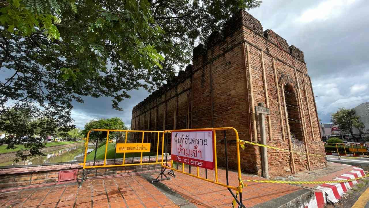 กรมศิลปากร รัดดามเฝือกประตูช้างเผือกเชียงใหม่ฝั่งซ้าย เสี่ยงถล่มซ้ำ ชี้แนวกำแพงที่พังถล่มเป็นโบราณสถาน แม้สร้างขึ้นใหม่ หลังนักวิชาการโพสต์ดราม่า บอกพังได้ก็ดี