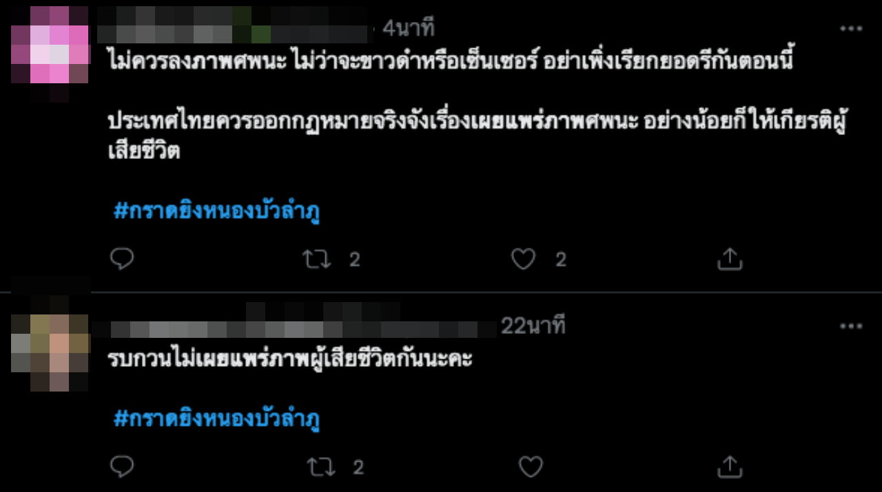 โซเชียลประณามเหตุ "กราดยิงหนองบัวลําภู" ขออย่าเผยแพร่ภาพผู้เสียชีวิต ชี้เป็นภาพสะเทือนใจ ขอทุกคนให้เกียรติผู้เสียชีวิตและครอบครัว