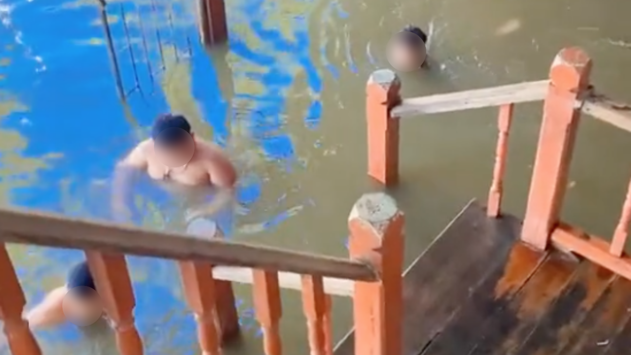 อย่างไรก็ตาม คุณแม่เจ้าของคลิปยังได้อธิบายเพิ่มเติมว่า บริเวณที่เด็กๆ ลงเล่นน้ำในภายในบ้าน ที่ อ.บางปลาม้า จ.สุพรรณบุรี โดยระดับน้ำลึกระดับเอวของเด็กโตเท่านั้น และสามารถว่ายน้ำได้หมดทุกคน จึงไม่กังวลกับน้ำท่วม ประกอบกับช่วงนี้เป็นช่วงปิดเทอม ทำให้เด็กๆ แอบลงมาเล่นน้ำบ่อยๆ.