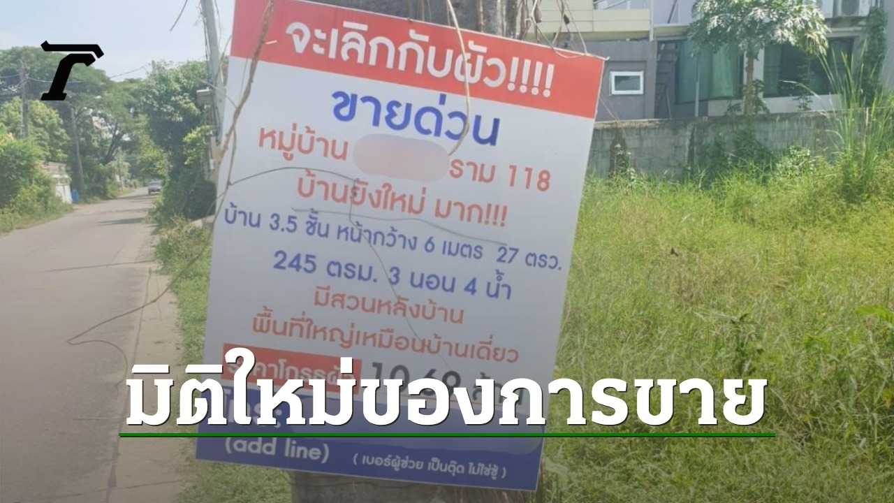 ใครเห็นก็ต้องอ่าน ป้ายประกาศขายบ้านมิติใหม่ ตั้งราคาโหดเพราะโกรธผัว อ่านดูพีกทุกบรรทัด โซเชียลชื่นชมทำการตลาดได้ดีมาก