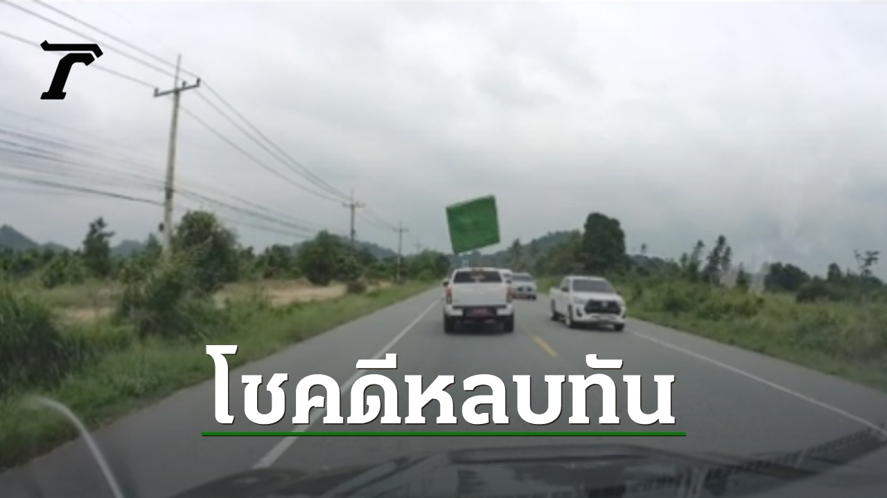 โซเชียลแห่แชร์ คลิปหนุ่มขับรถอยู่ดีๆ ได้ของแถมเป็นฟูกที่นอน ลอยข้ามหลังคา ก่อนตกลงบนถนน โชคดีที่หักหลบทัน จึงไม่เกิดอุบัติเหตุ