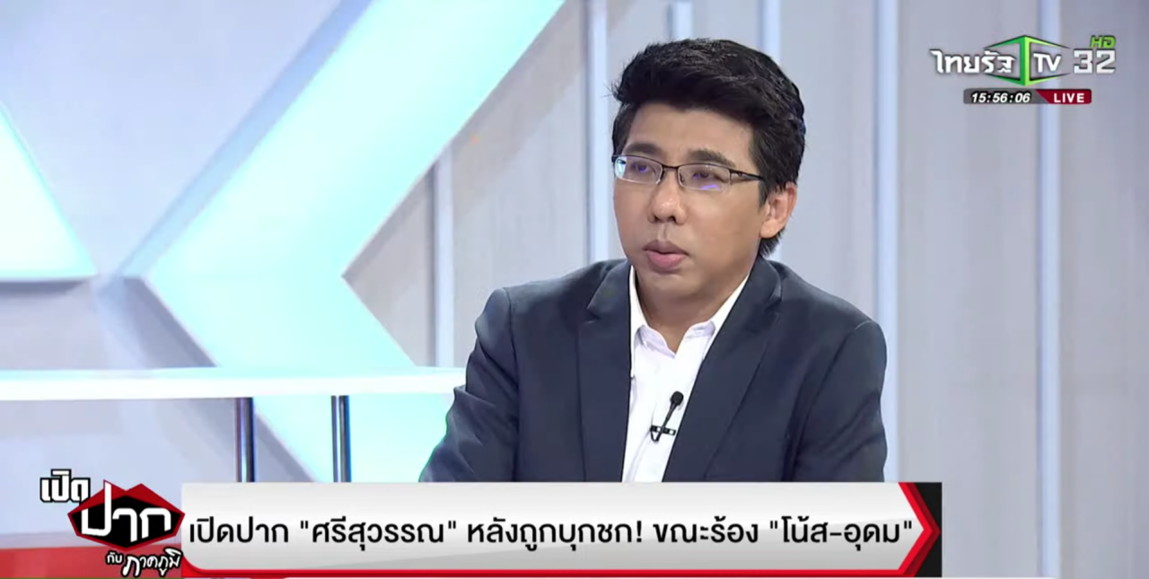 เมื่อเวลา 15.30 น. วันที่ 18 ตุลาคม 2565 ในรายการ "เปิดปากกับภาคภูมิ" ทางไทยรัฐทีวีช่อง 32 ดำเนินรายการโดย นายภาคภูมิ พันธุ์สถิตย์ ได้พูดคุยกับ นายเสกสกล อัตถาวงศ์ อดีตผู้ช่วยรัฐมนตรีประจำนายกรัฐมนตรี และนายศรีสุวรรณ จรรยา เลขาธิการสมาคมองค์การพิทักษ์รัฐธรรมนูญไทย หลังเกิดเหตุถูกชายคนหนึ่งบุกเข้าทำร้ายระหว่างให้สัมภาษณ์กับสื่อมวลชน กรณีร้องเรียนทอล์กโชว์เดี่ยวไมโครโฟน 13 ที่กองบังคับการปราบปรามการกระทำความผิดเกี่ยวกับอาชญากรรมทางเทคโนโลยี (บก.ปอท.)