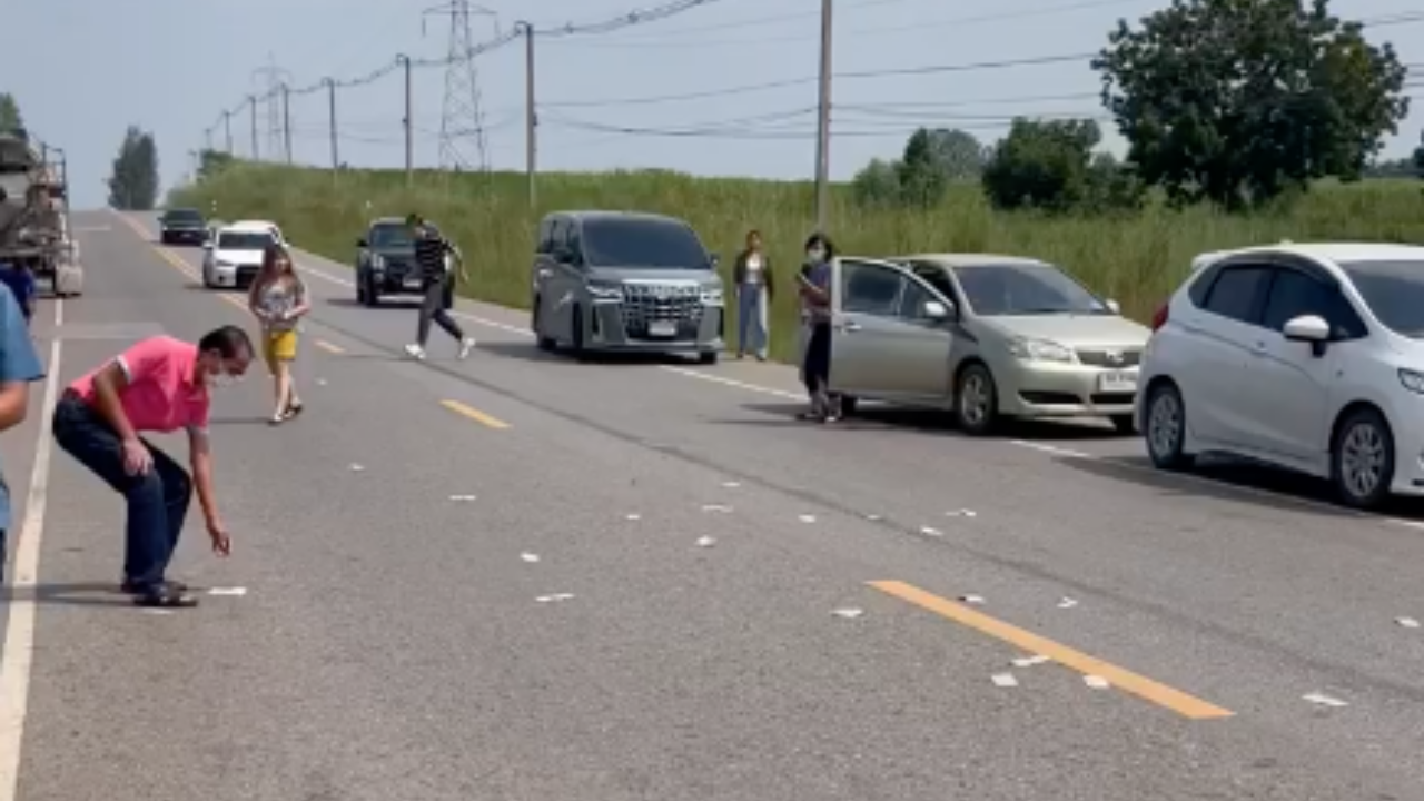 สังคมชื่นชม คลิปกลุ่มพลเมืองดี หยุดรถเพื่อช่วยกันเก็บ ธนบัตร 1,000 บาท ปลิวเกลื่อนบนพื้นถนน ก่อนจะรวบรวมแจ้งตำรวจ เพื่อส่งคืนเจ้าของ