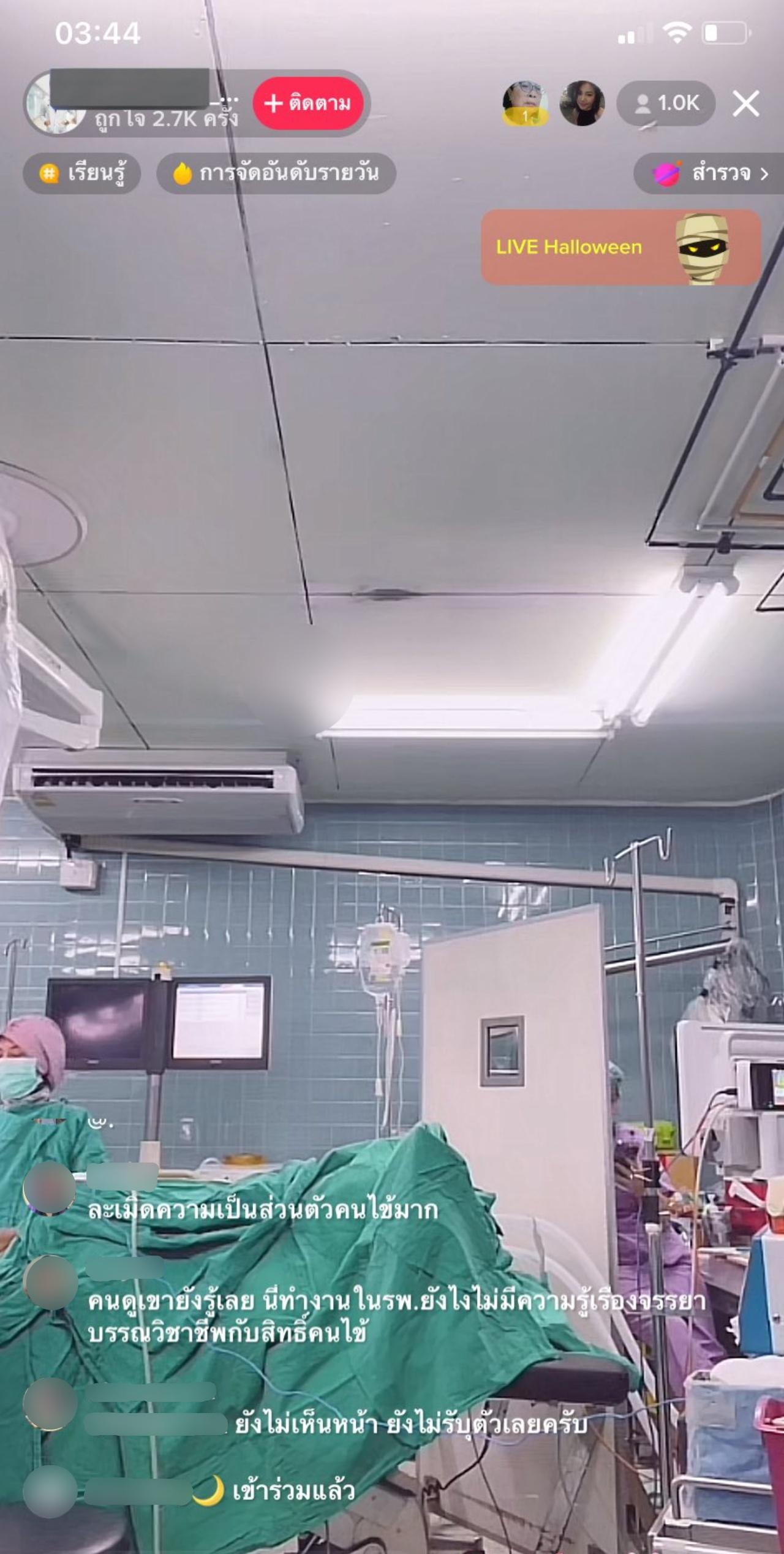 วันที่ 1 พฤศจิกายน 2565 ผู้สื่อข่าวรายงานว่า กลายเป็นประเด็นที่ถูกวิพากษ์วิจารณ์ เมื่อโลกออนไลน์ได้มีการแชร์คลิป คุณหมอในโรงพยาบาลแห่งหนึ่ง ไลฟ์สดขณะทำการผ่าตัดคนไข้ ซึ่งหลังจากที่คลิปดังกล่าวถูกเผยแพร่ออกไป ชาวเน็ตต่างเข้าไปแสดงความคิดเห็นเป็นจำนวนมาก ว่าเป็นพฤติกรรมที่ไม่เหมาะสม ละเมิดสิทธิความส่วนตัวของคนไข้ และมองว่าเป็นเรื่องที่ผิดจรรยาบรรณแพทย์