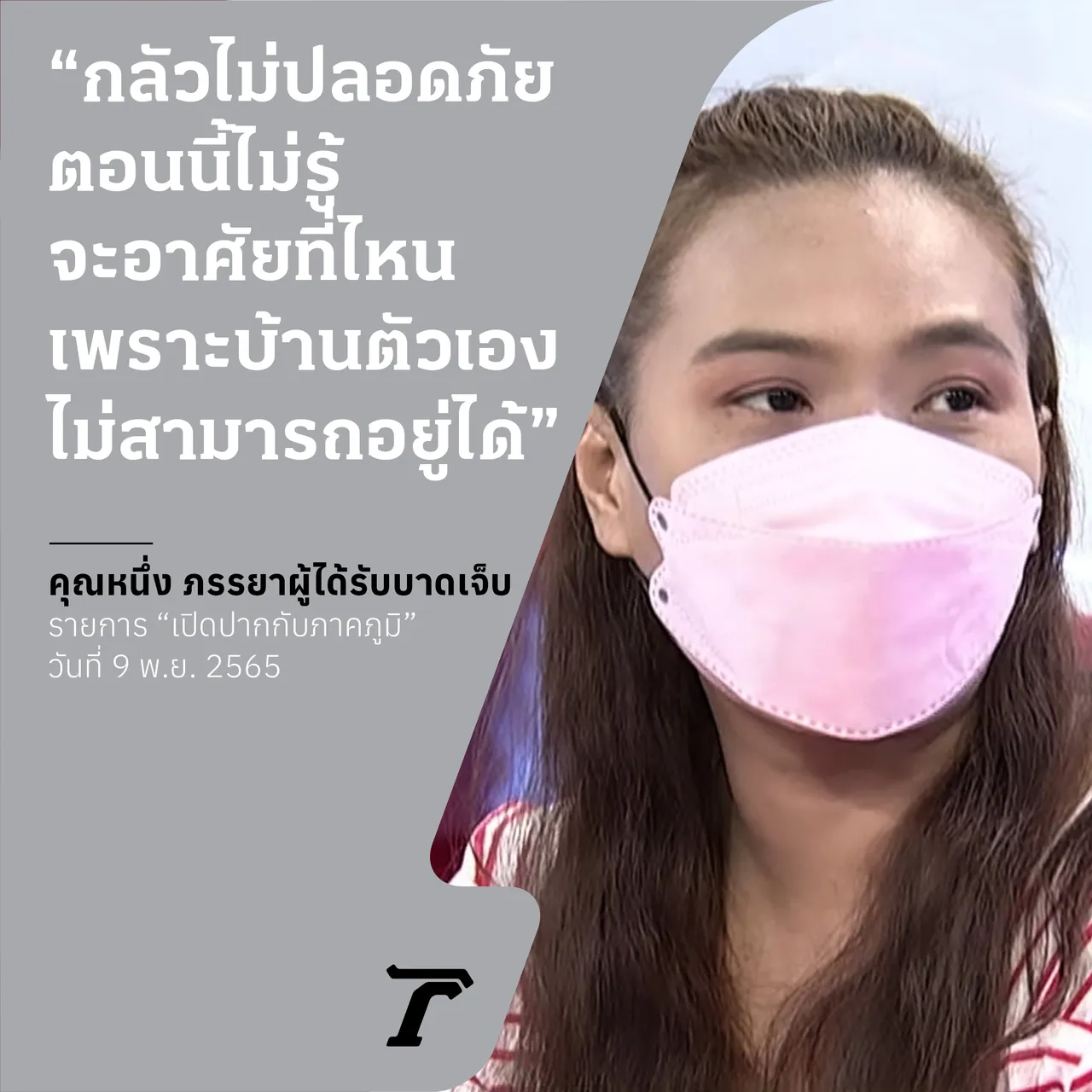 ขณะที่เกิดเรื่องตนเข้าไปล้างจานอยู่ในบ้าน พอเห็นว่ามีเรื่องจึงรีบวิ่งออกมา แต่มีคนในกลุ่มนั้นขู่ให้หยุด หลังจากแจ้งความแล้วแต่เรื่องไม่คืบหน้า เขาบอกว่าจับผู้ก่อเหตุได้ 1 คน เขาสารภาพว่า ต่อย ทั้งที่เขาถือปืนมา ตนจึงไปร้องเรียนกับเพจสายไหมต้องรอด ระหว่างนี้ ตน แม่ และสามีต้องไปรักษาตัวที่อื่น เพราะเกรงว่าอยู่ที่เดิมแล้วจะไม่ปลอดภัย ต้องไปอยู่บ้านป้า คน 4-5 คนอยู่รวมกันไม่ได้อยู่แล้ว และยังมีเรื่องที่ต้องขาดรายได้