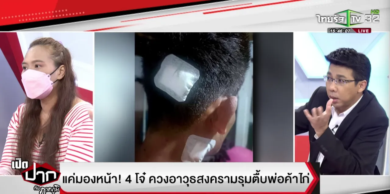 เมื่อเวลา 15.30 น. วันที่ 9 พฤศจิกายน 2565 ในรายการ "เปิดปากกับภาคภูมิ" ทางไทยรัฐทีวีช่อง 32 ดำเนินรายการโดย นายภาคภูมิ พันธุ์สถิตย์ ได้พูดคุยกรณี ชาย 4 คนควงอาวุธสงครามบุกทำร้ายพ่อค้าไก่จนได้รับบาดเจ็บ เหตุแค่มองหน้า ขู่ถ้าแจ้งความจะเอาให้ตาย