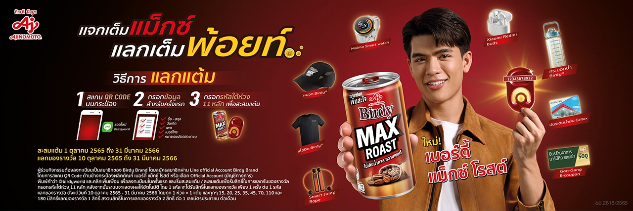 บริษัท อายิโนะโมะโต๊ะ (ประเทศไทย) จำกัด ให้ความสำคัญในการพัฒนาสินค้าคุณภาพ เพื่อตอบสนองความต้องการของผู้บริโภค ซึ่งการบุกเบิกตลาดกาแฟนมที่ไม่เติมน้ำตาลครั้งนี้ จะช่วยส่งมอบทางเลือกให้กับผู้บริโภคที่ชื่นชอบการดื่มกาแฟนมแต่มีความกังวลเรื่องสุขภาพ และจะช่วยผลักดันการเติบโตของกลุ่มสินค้าเพื่อสุขภาพ โดย “เบอร์ดี้ แม็กซ์ โรสต์” มาพร้อมกับคอนเซปต์ “กาแฟนม ไม่เติมน้ำตาล หวานพอดี” ซึ่งเป็นผลิตภัณฑ์แรกในตลาดกาแฟนมที่ไม่เติมน้ำตาล เหมาะสำหรับผู้ที่รักสุขภาพและต้องการดื่มกาแฟในทุกๆ วัน โดยไม่ต้องกังวลเรื่องปริมาณน้ำตาล พร้อมเปิดตัว จอส-เวอาห์ แสงเงิน นักแสดงชื่อดัง ในฐานะพรีเซ็นเตอร์ ตัวแทนคนรุ่นใหม่ที่ใส่ใจในสุขภาพ สะท้อนภาพลักษณ์ ลุคคม เข้ม ของกาแฟนมรสชาติเข้มอย่าง ‘เบอร์ดี้ แม็กซ์ โรสต์’ นอกจากนี้ เบอร์ดี้ยังจัดเต็มปล่อยแคมเปญ "แจกเต็มแม็กซ์ แลกเต็มพ้อยท์' แลกรางวัลได้แบบไม่ต้องลุ้น แค่ 3 วิธีง่ายๆ 1. สแกน QR code บนกระป๋อง หรือแอดไลน์ @birdyworld 2. กรอกข้อมูลสำหรับครั้งแรก 3. กรอกรหัสใต้ห่วง 11 หลักเพื่อสะสมแต้ม แลกของรางวัลได้แบบไม่ต้องลุ้น ตั้งแต่วันนี้ถึงวันที่ 31 มีนาคม 2566 ติดตามข้อมูลเพิ่มเติมและความเคลื่อนไหวของ “เบอร์ดี้” ได้ที่เฟซบุ๊กแฟนเพจ BirdyWorld และ www.ajinomoto.co.th