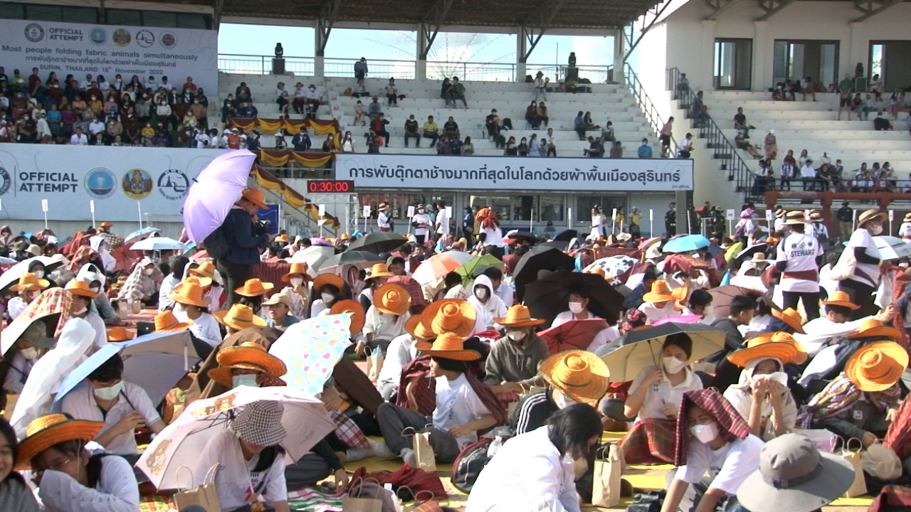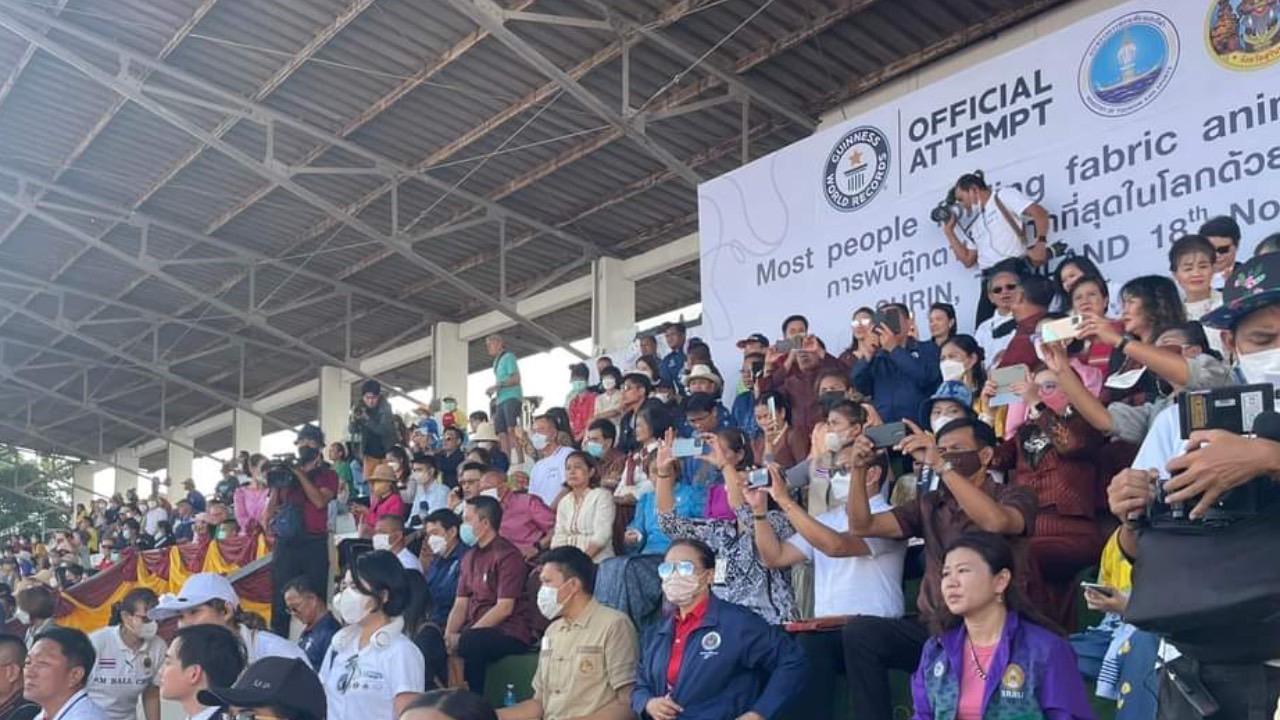 โดยกิจกรรมดังกล่าว จัดขึ้นเมื่อช่วงบ่ายของวันที่ 18 พฤศจิกายน ที่ผ่านมา บริเวณสนามแสดงช้างสุรินทร์ ต.นอกเมือง อ.เมือง จ.สุรินทร์ โดยมีผู้ว่าราชการจังหวัดสุรินทร์เป็นประธานในพิธี เปิดกิจกรรมการบันทึกสถิติกินเนสส์ เวิลด์ เรคคอร์ด การพับตุ๊กตาช้าง ด้วยผ้าพื้นเมืองสุรินทร์ เพื่อกระตุ้นเศรษฐกิจ