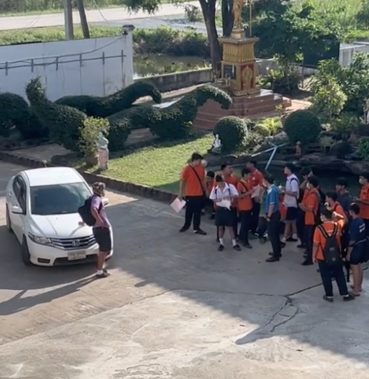 ต่อมาผู้สื่อข่าวเดินทางลงพื้นที่ ไปยังโรงเรียนวิเชียรกลิ่นสุคนธ์อุปถัมภ์ หมู่ที่ 4 ต.ลำไทร อ.วังน้อย จ.พระนครศรีอยุธยา พบกับนาย กิตติกรณ์ ไวยนิธา อายุ 18 ปี นักเรียนชั้น ม.6/3 ผู้ที่อยู่บนฝากระโปรงรถในคลิปดังกล่าว เปิดใจถึงที่มาของเหตุการณ์ในคลิปว่า เรื่องราวเกิดขึ้นจากคุณครูที่ปรึกษางอนพวกตน เนื่องจากโดดเรียนบ่อย ทำให้คุณครูโกรธ และออกจากกลุ่มไลน์ของห้องเรียน เหล่านักเรียนจึงได้วางแผนตามง้อ