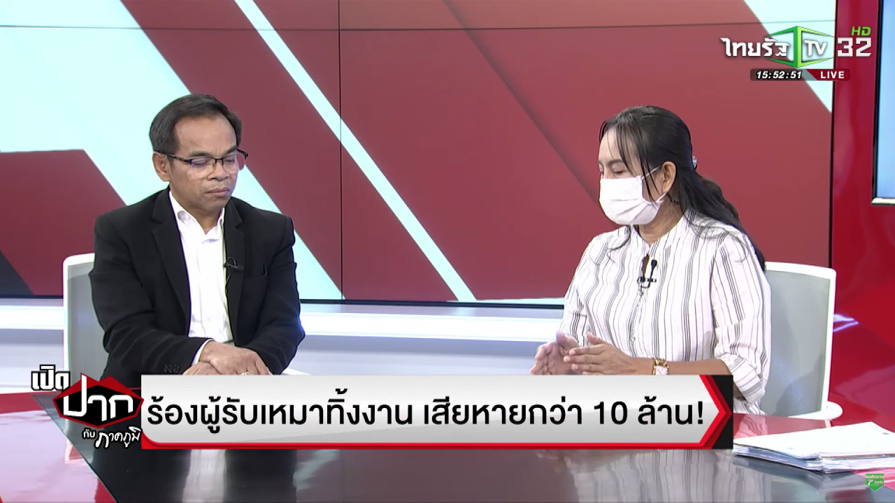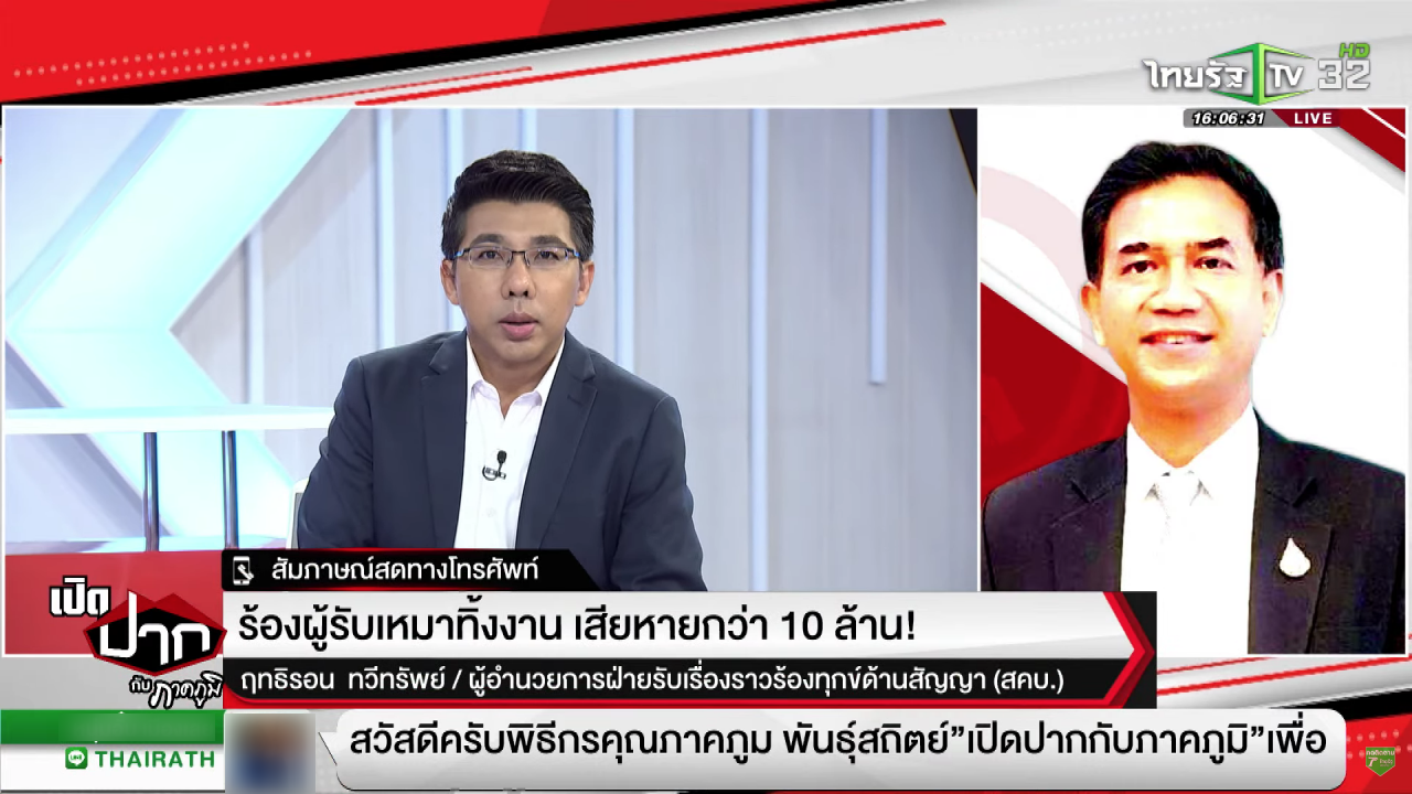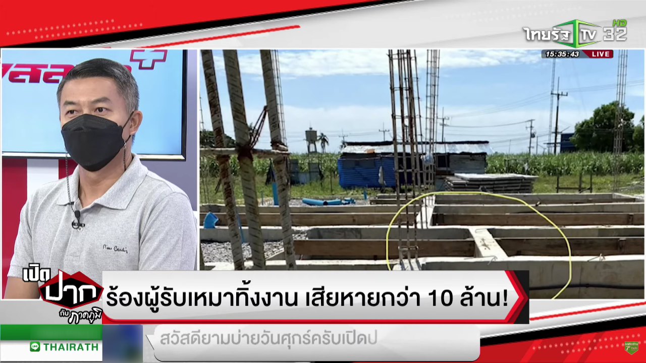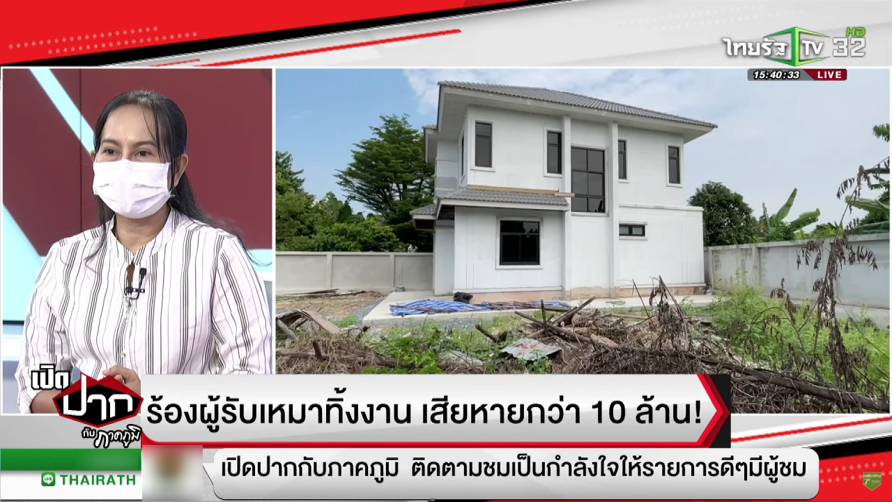 เมื่อเวลา 15.30 น. วันที่ 9 ธันวาคม 2565 ในรายการ "เปิดปากกับภาคภูมิ" ทางไทยรัฐทีวีช่อง 32 ดำเนินรายการโดย นายภาคภูมิ พันธุ์สถิตย์ ได้พูดคุยกับ 2 ผู้เสียหาย คือ นายเอกอนันต์ เรืองพลับพลา และนางมธุรดา ศรเชน ในกรณีผู้รับเหมาก่อสร้างบ้าน ทิ้งงานหนี ทำเสียหายกว่า 10 ล้าน
